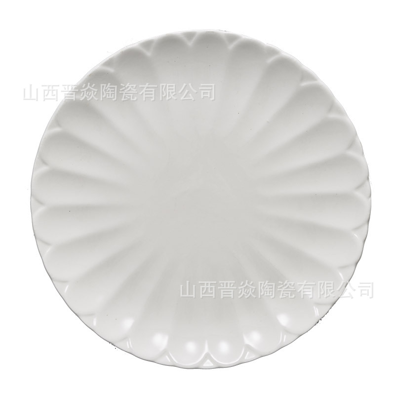 도매 세라믹 식기 얕은 접시 크리 에이 티브 순수한 흰색 두꺼운 국화 접시 스테이크 서양 음식 접시 세라믹 접시