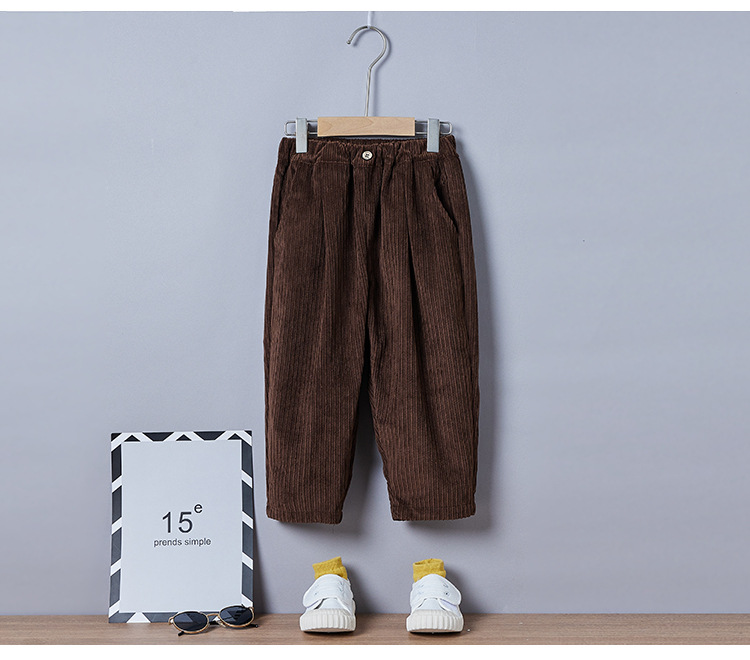 인스 스타일 남녀 아동용 코듀로이 봄 가을 한국판 신상 아기 캐주얼 바지 단색 다용도 아동용 조거 팬츠스토어 가기