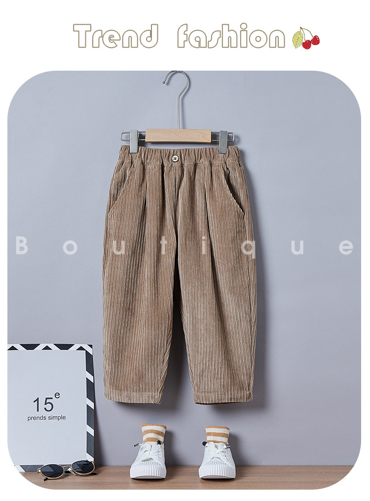 인스 스타일 남녀 아동용 코듀로이 봄 가을 한국판 신상 아기 캐주얼 바지 단색 다용도 아동용 조거 팬츠