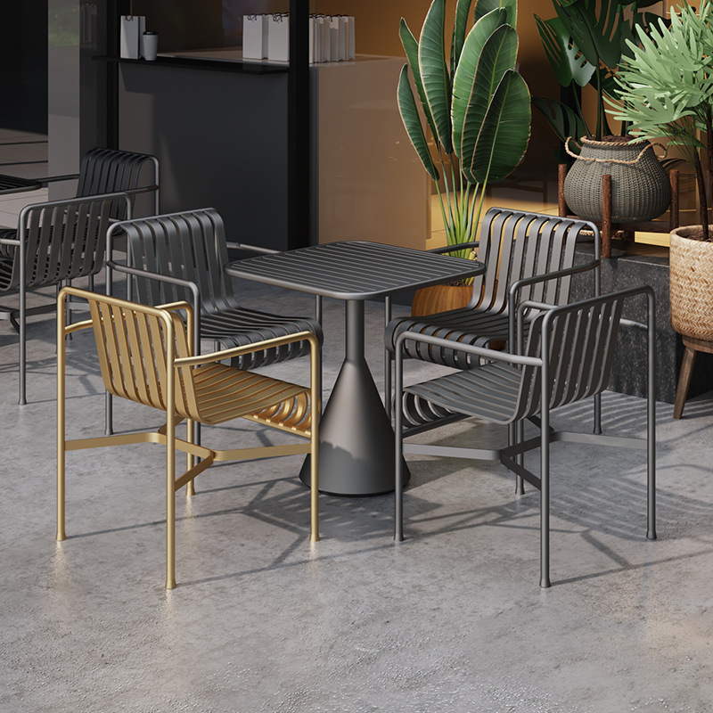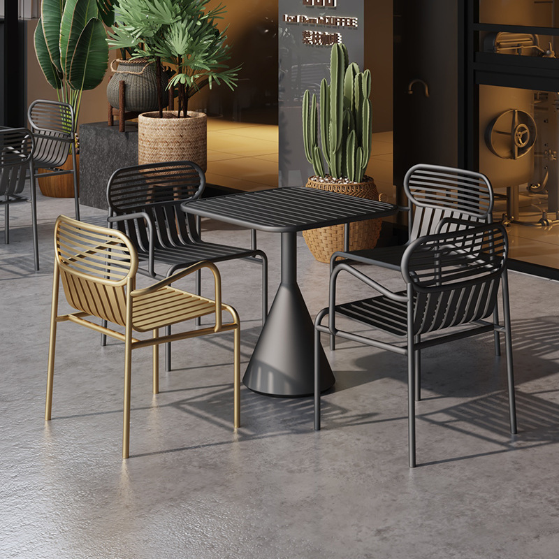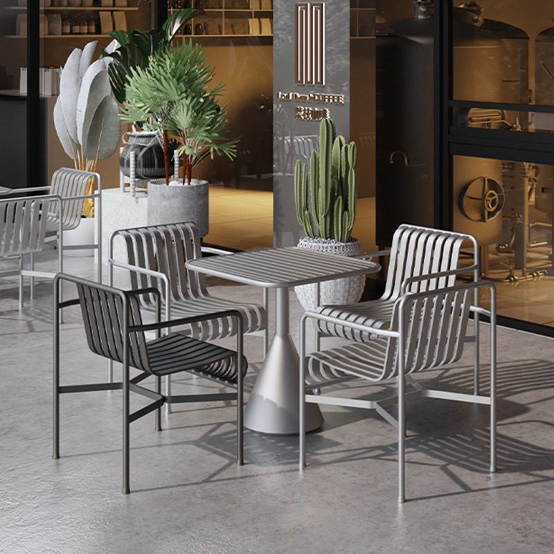 인터넷 축하 야외 테이블 및 의자 바 클리어링 바 산업 스타일 식탁과 의자 조합 레스토랑 캐주얼 작은 사각형 테이블 4 개의 의자