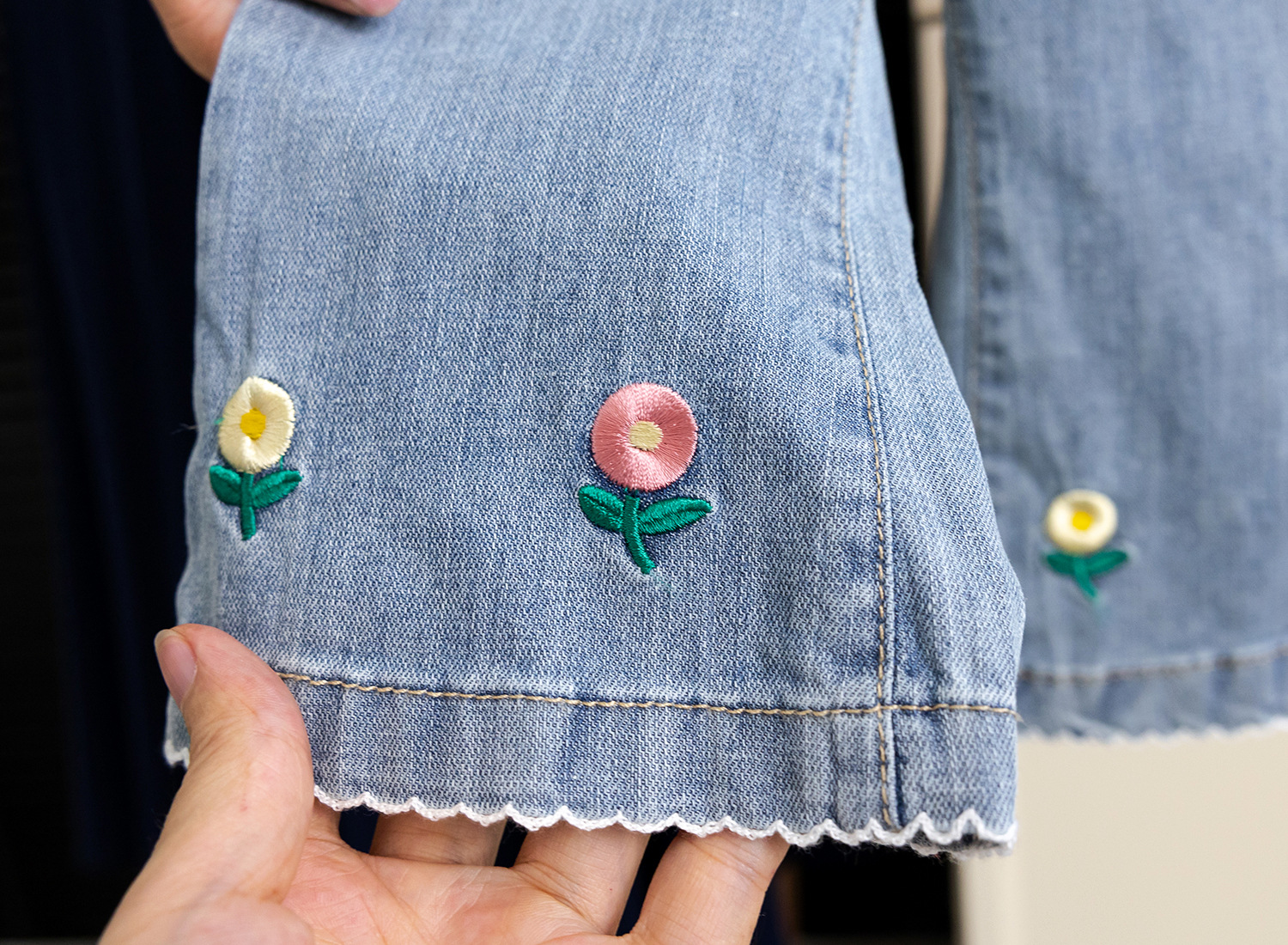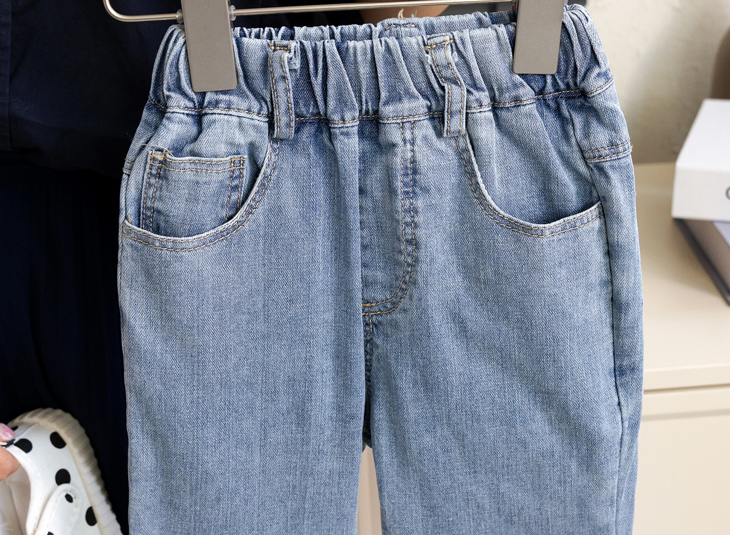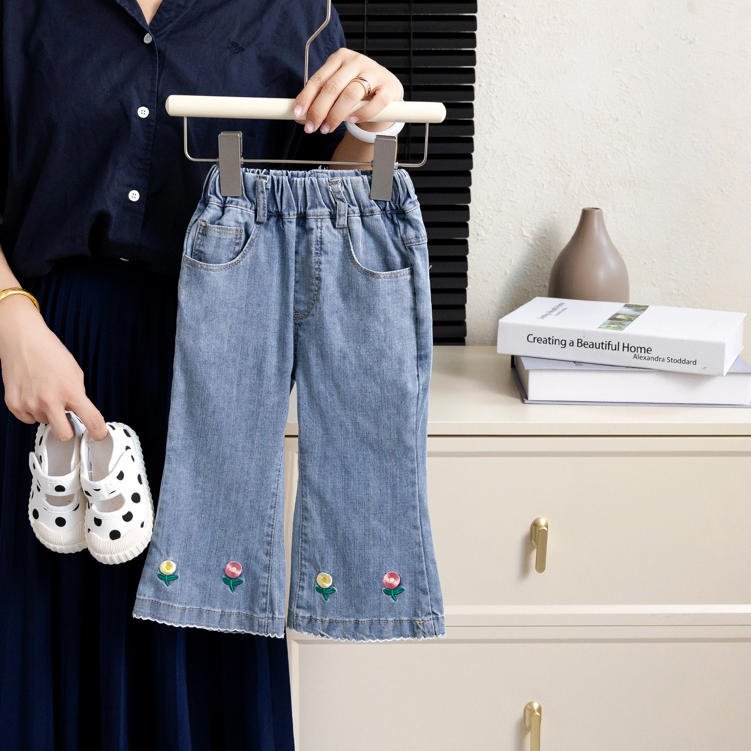 2025년 가을 신상 한국 스타일 여아 청바지, 봄, 가을 단색 자수 여아 패셔너블 아우터 팬츠스토어 가기