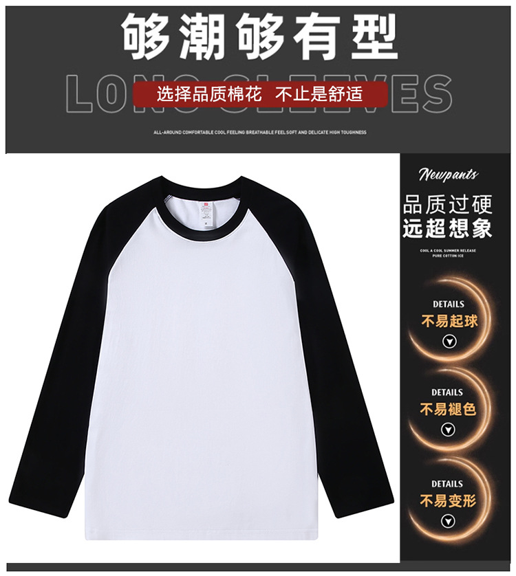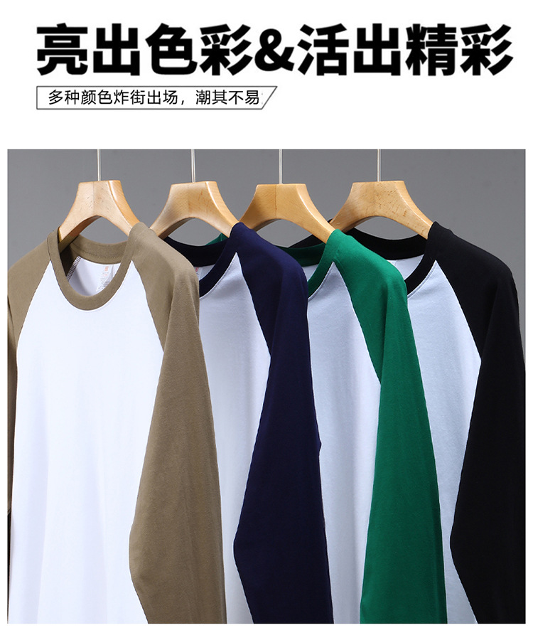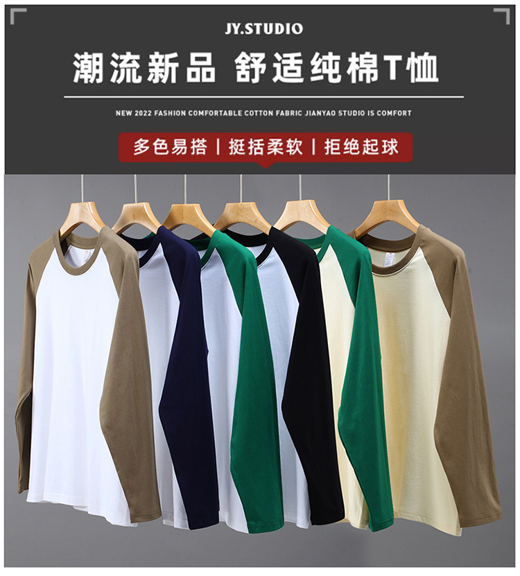 230g 래글런 긴팔 티셔츠 남성용 봄 가을 아메리칸 스타일 배색 스플라이싱 이너웨어 라운드넥 스웨트셔츠 남녀공용 배색 디자인스토어 가기