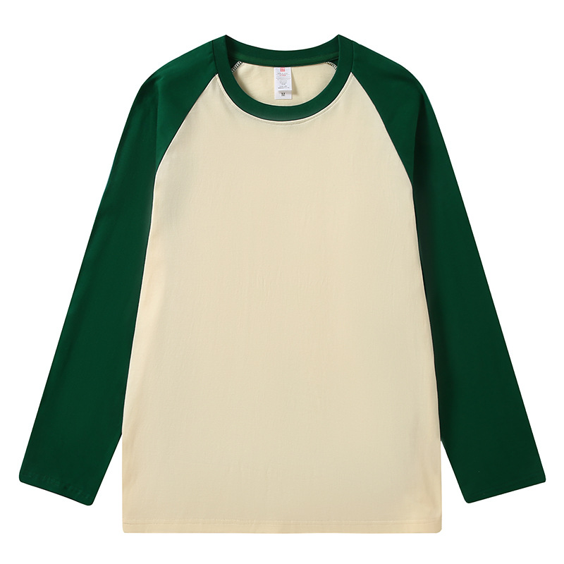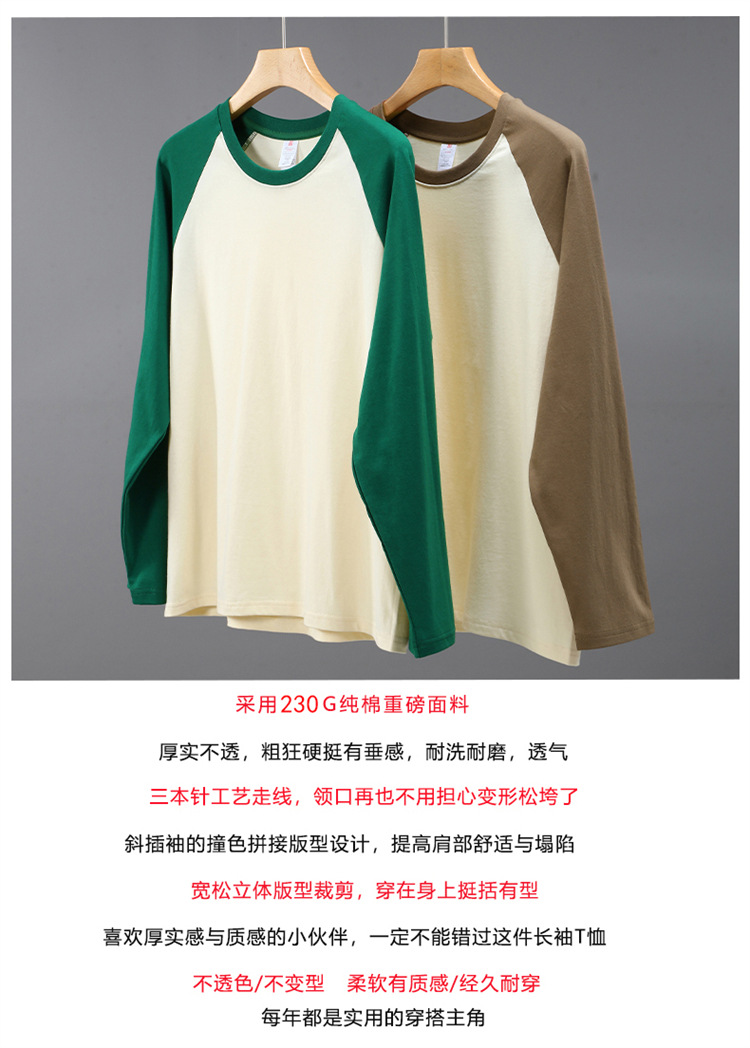 230g 래글런 긴팔 티셔츠 남성용 봄 가을 아메리칸 스타일 배색 스플라이싱 이너웨어 라운드넥 스웨트셔츠 남녀공용 배색 디자인