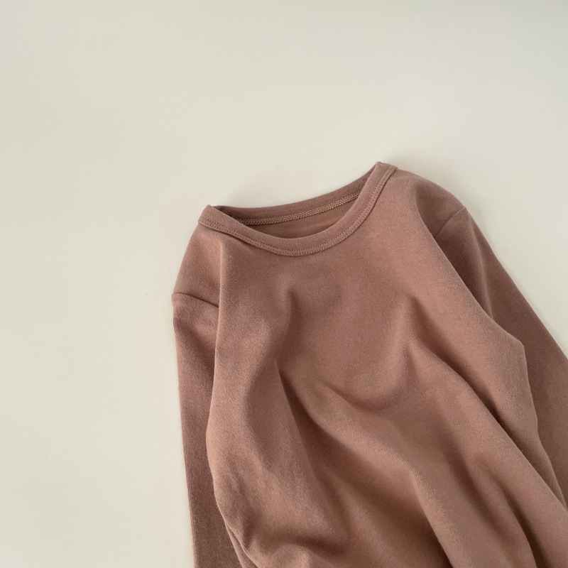 2023 아동용 긴팔 티셔츠 베이스 셔츠 가을과 겨울 느슨한 단색 스트레치 크루 넥 브러시 탑 소년 소녀 용스토어 가기