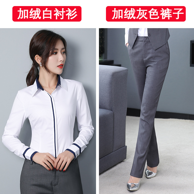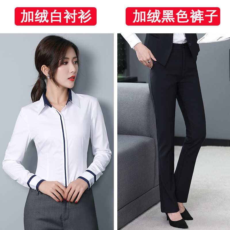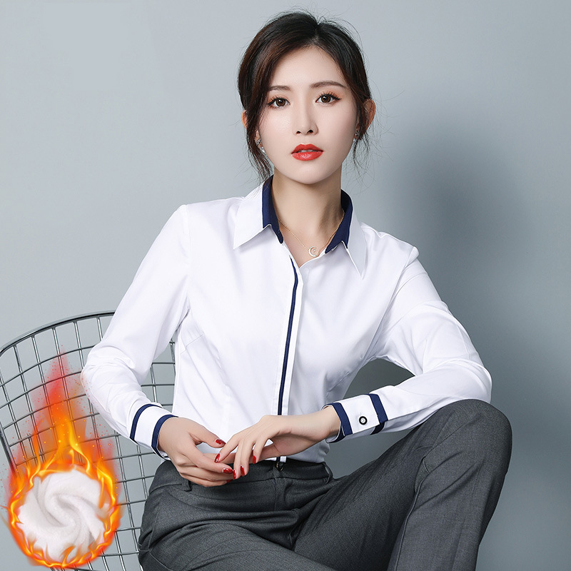 기모 셔츠 여성용 겨울 슬림핏 모든 경기 우아한 두꺼운 따뜻한 비즈니스웨어 긴팔 흰색 셔츠 작업복스토어 가기