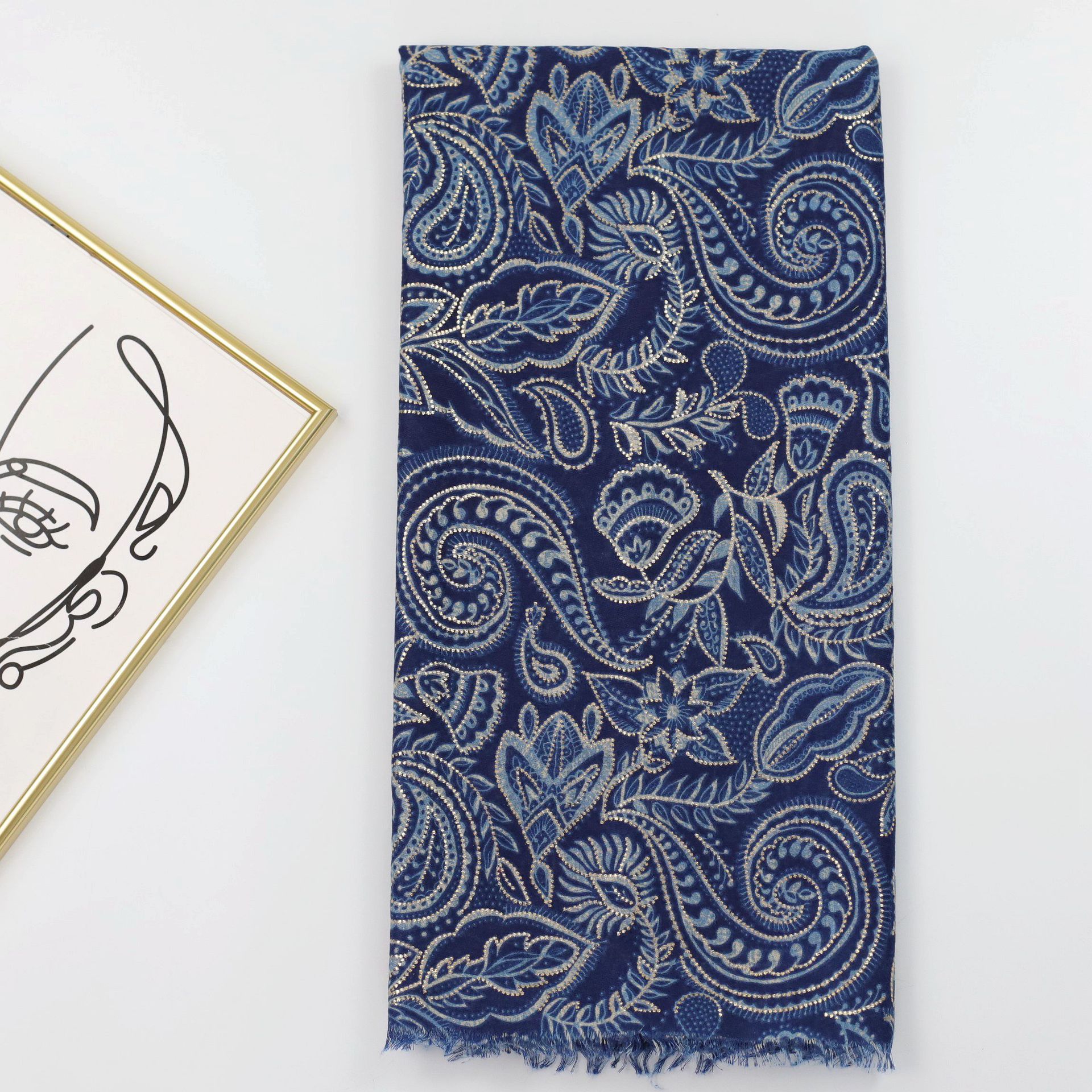 공장 판매 해외 무역 크로스 보더 브론징 나이트 캐슈 프린트 실크 스카프 새틴 부드럽고 좋은 손 느낌 여성용 긴 스카프 봄과 가을 와이