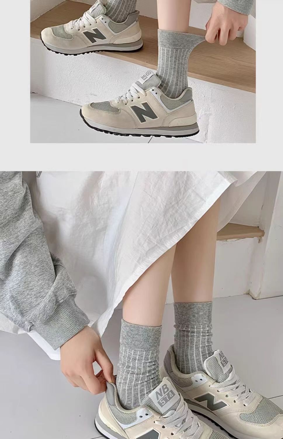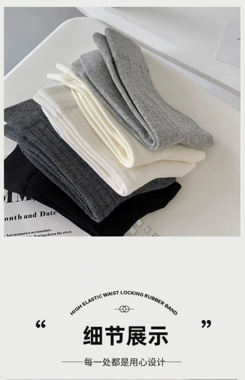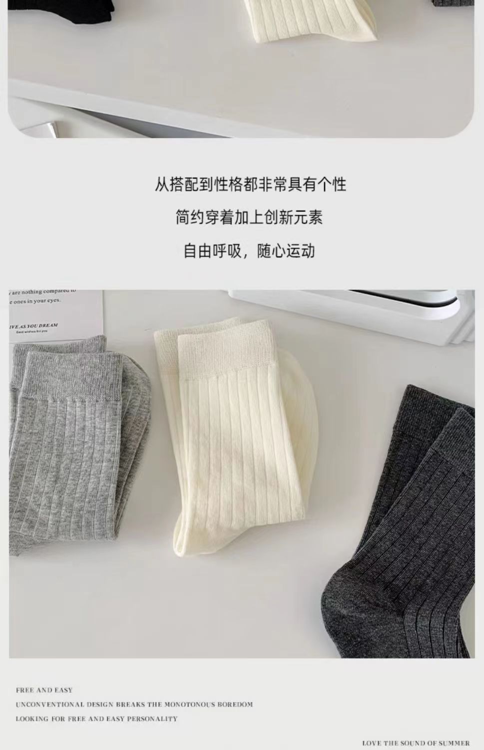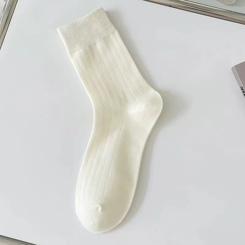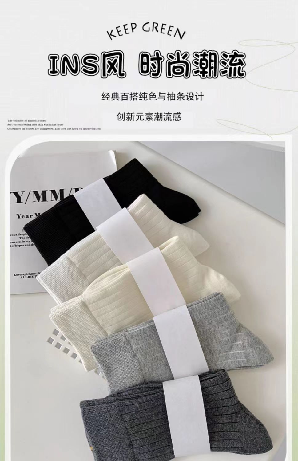 세로 스트라이프 화이트 양말 여성용 최신 유행 한국 모든 매치 심플 중간 길이 양말 봄과 가을 순면 스포츠 스택 양말스토어 가기