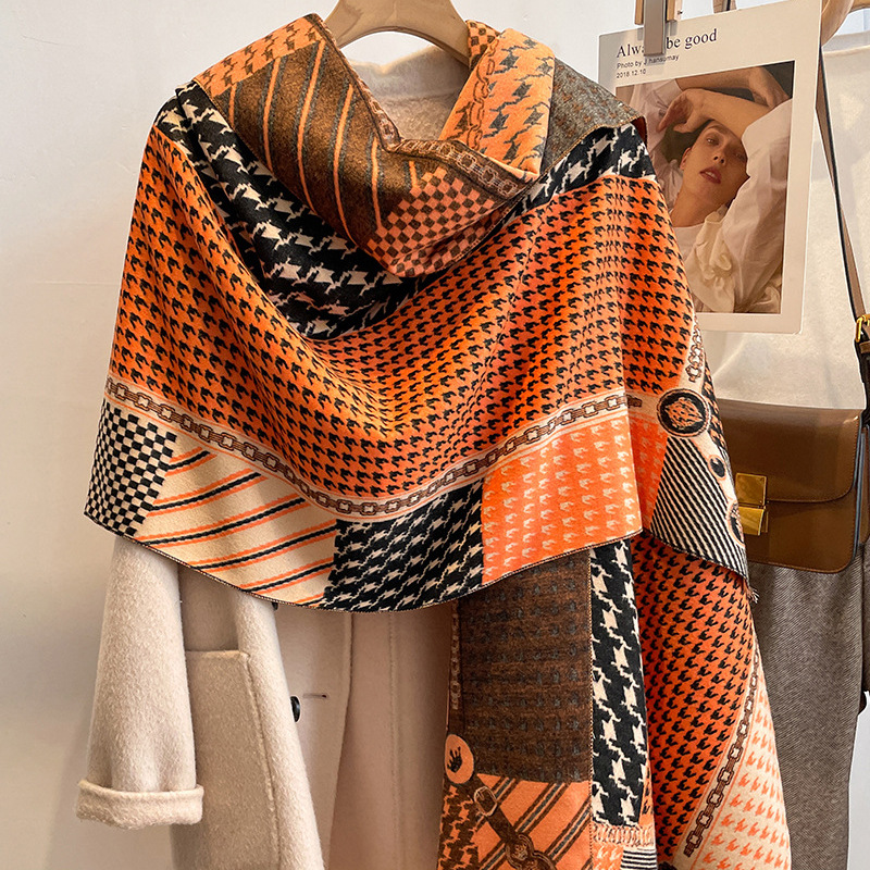 대외 무역 클래식 고급 모든 매치 캐시미어 스카프 여성용 하운즈투스 숄 이중 사용 따뜻한 목 울 숄