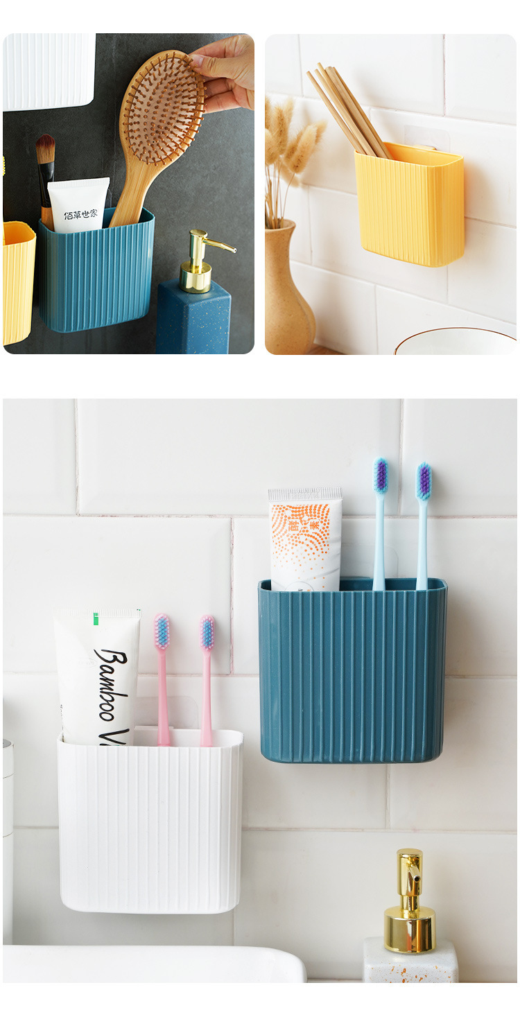 간단한 벽걸이 형 보관함 가정용 욕실 화장실 비 천공 배수 보관 랙 칫솔 치약 보관 버킷