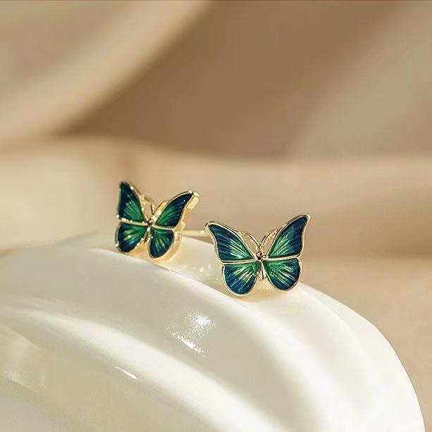 구리 합금 귀걸이 프랑스 유화 스타일 부드러운 스마트 나비 작은 귀 스터드 우아한 여성의 한국 간단한 귀 스터드