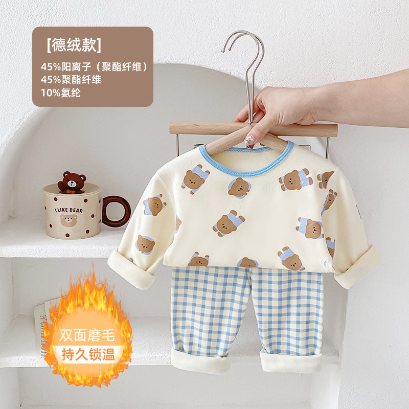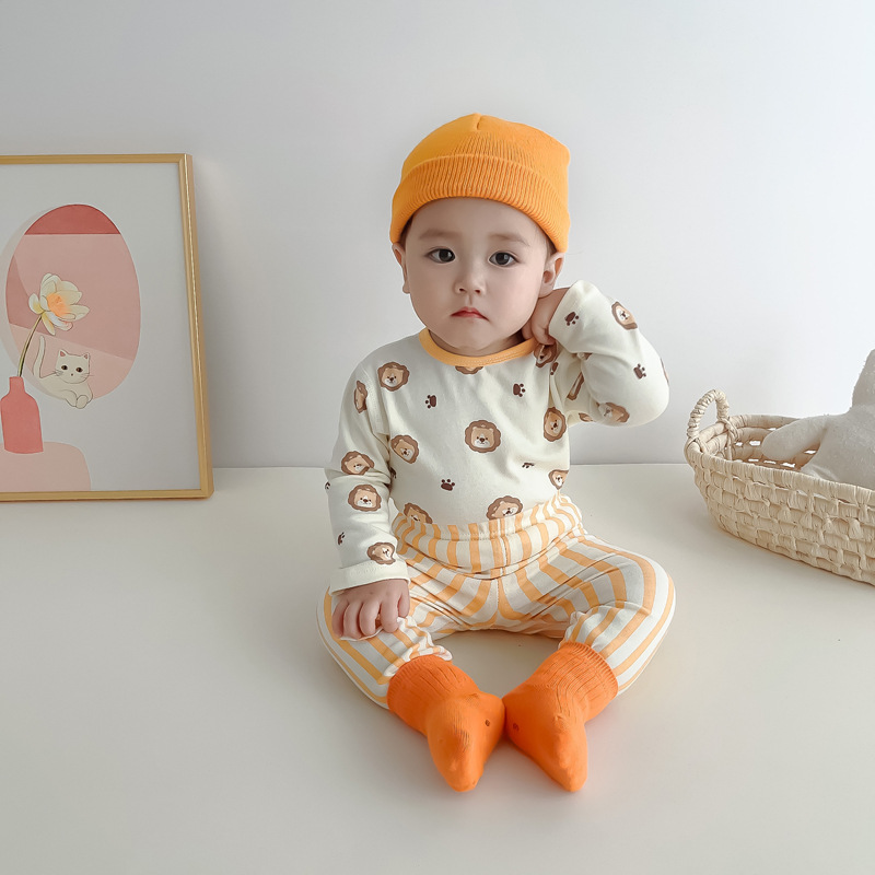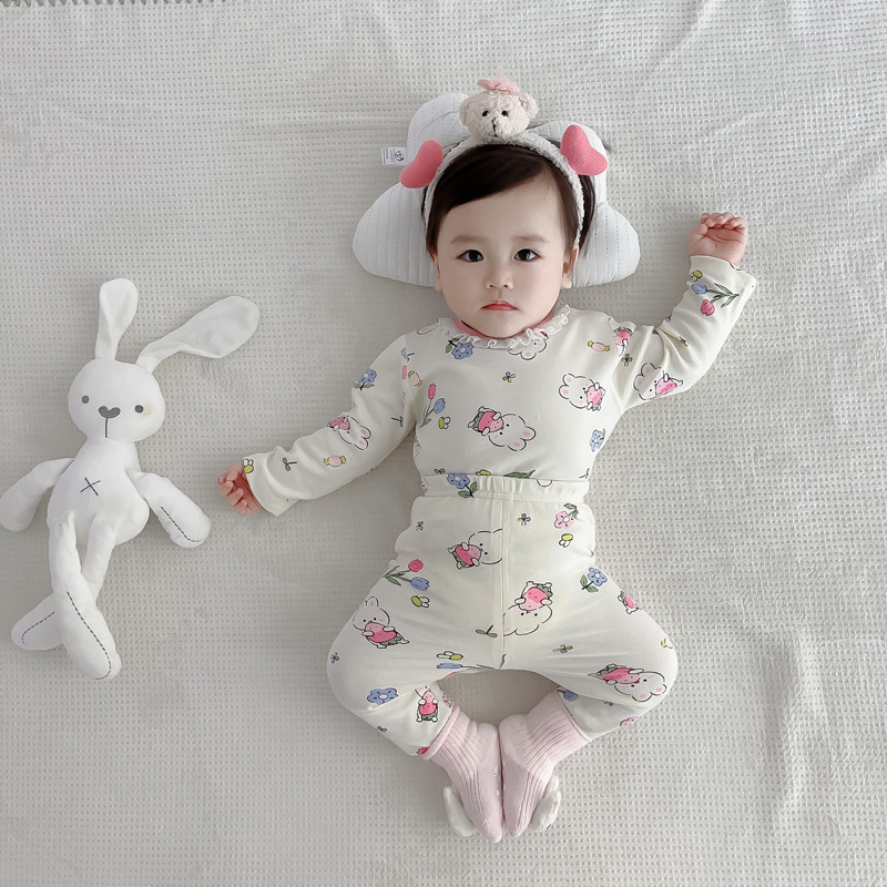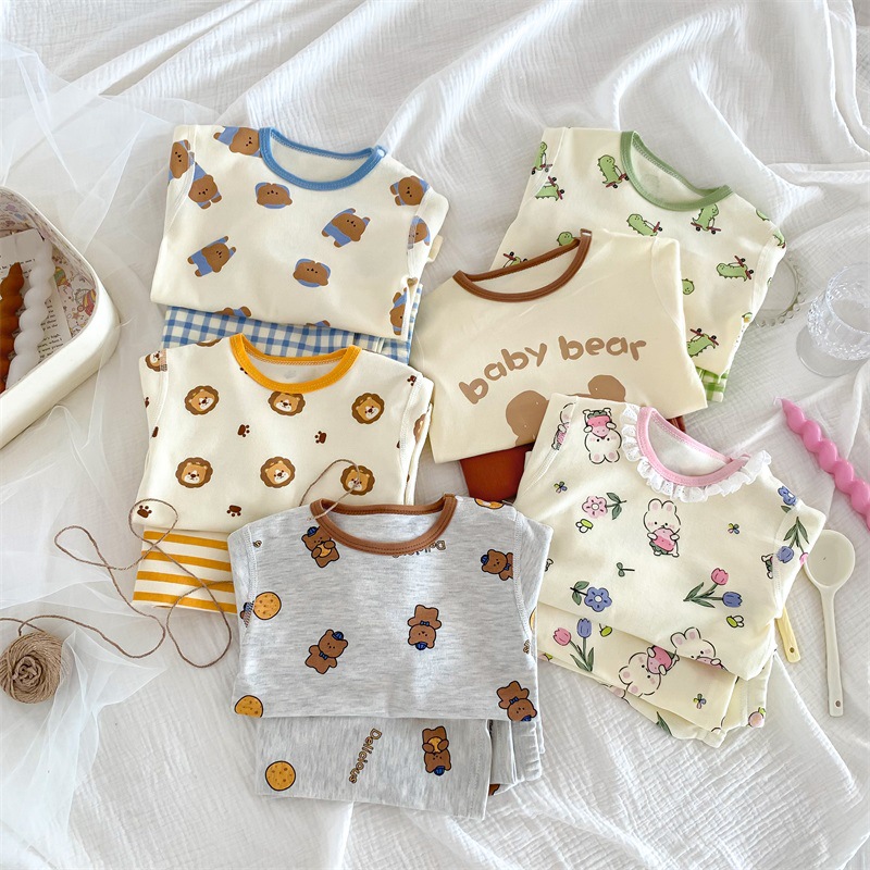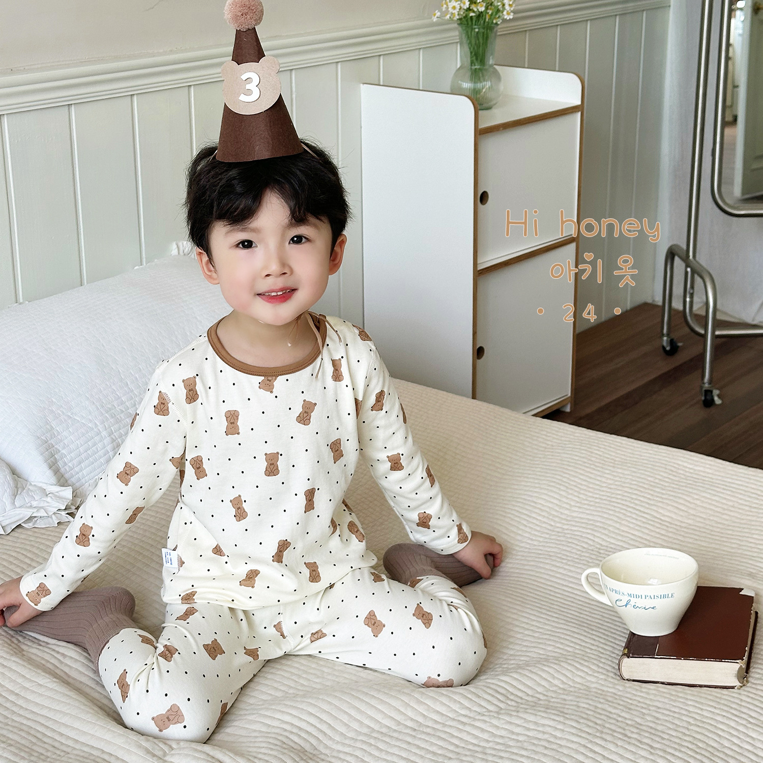 25 새로운 한국어 ins 어린이 가정 의류 세트 면화 뼈없는 가을 옷 남성과 여성 잠옷 아기 가을, 겨울스토어 가기