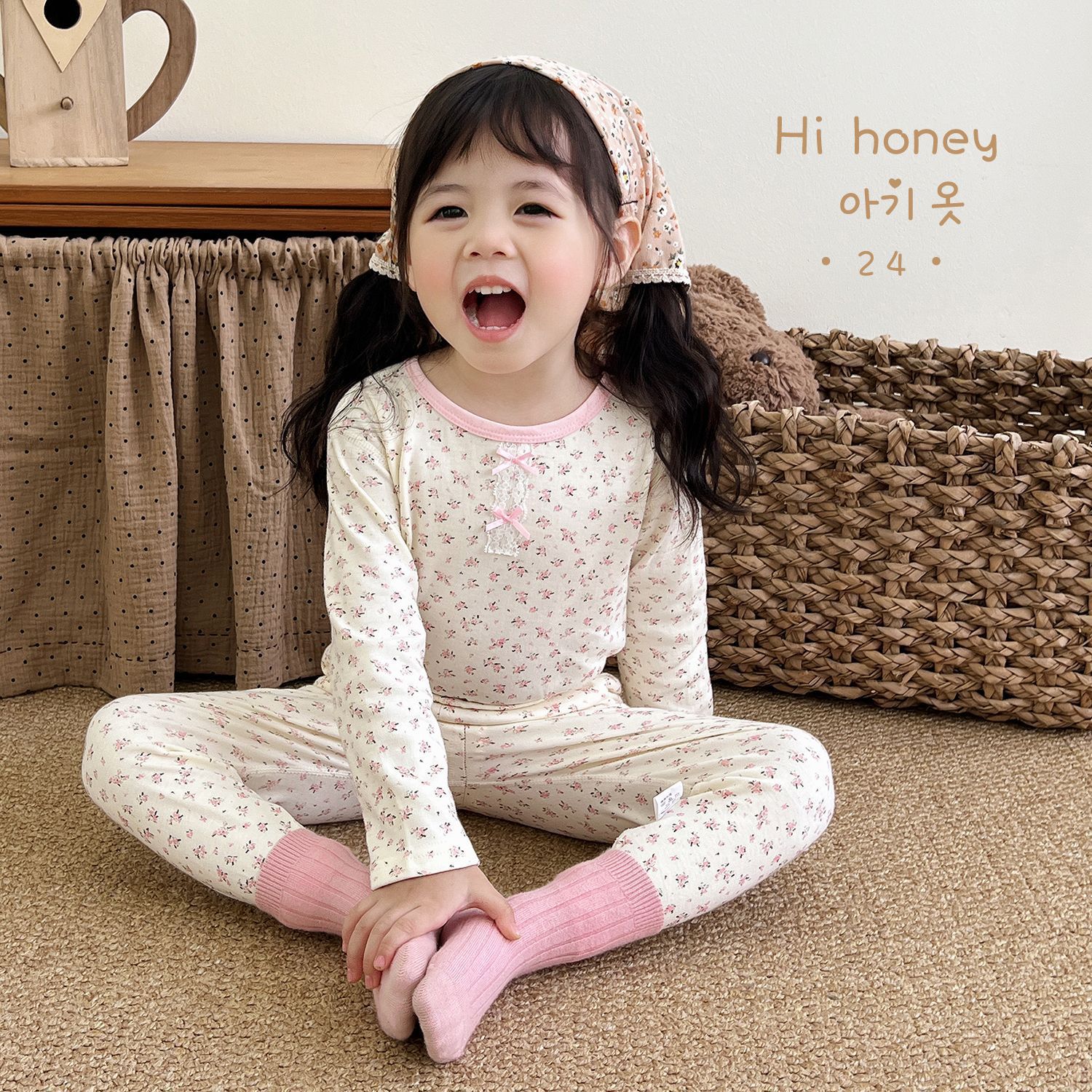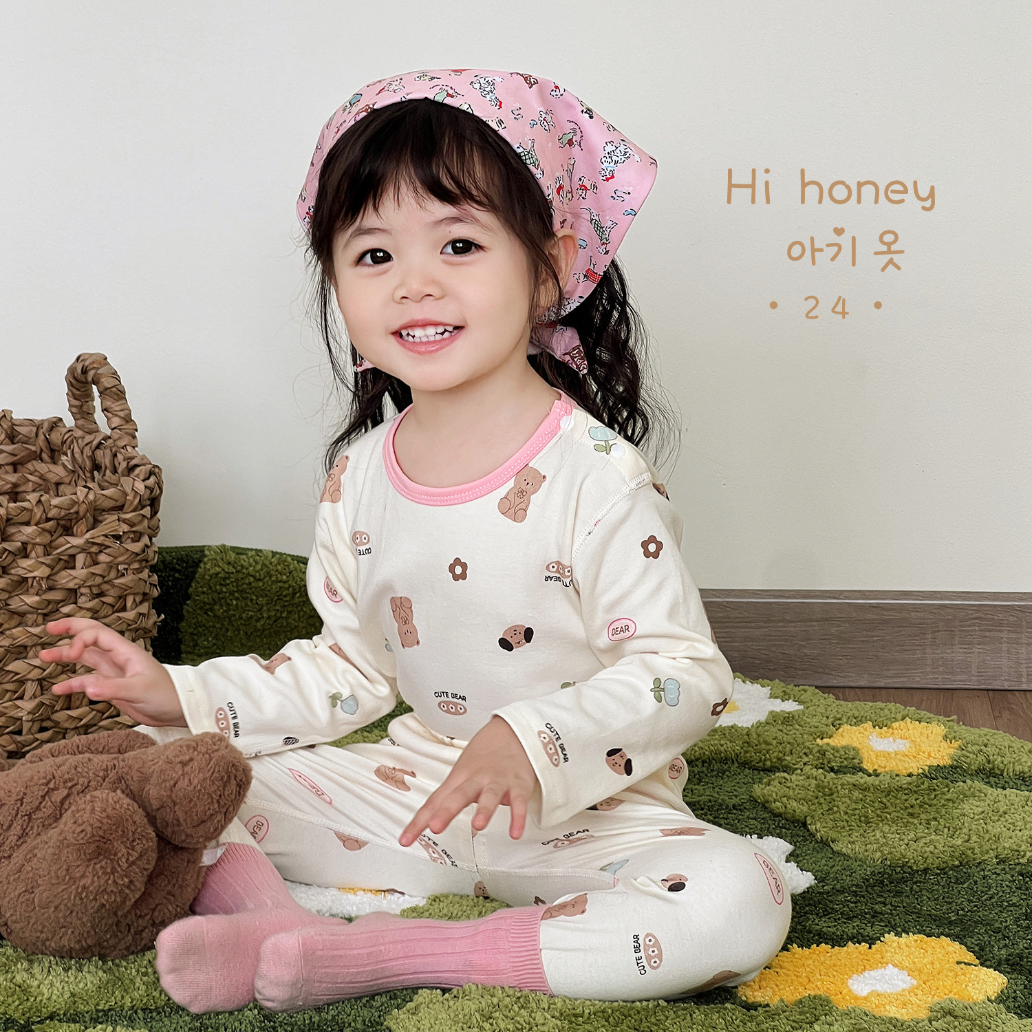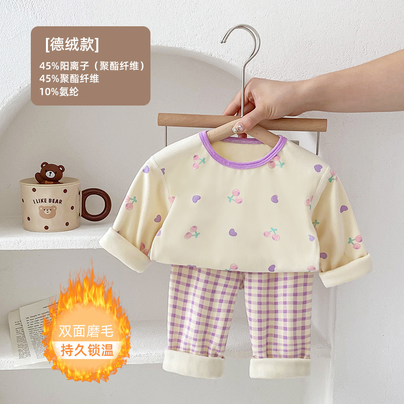 25 새로운 한국어 ins 어린이 가정 의류 세트 면화 뼈없는 가을 옷 남성과 여성 잠옷 아기 가을, 겨울