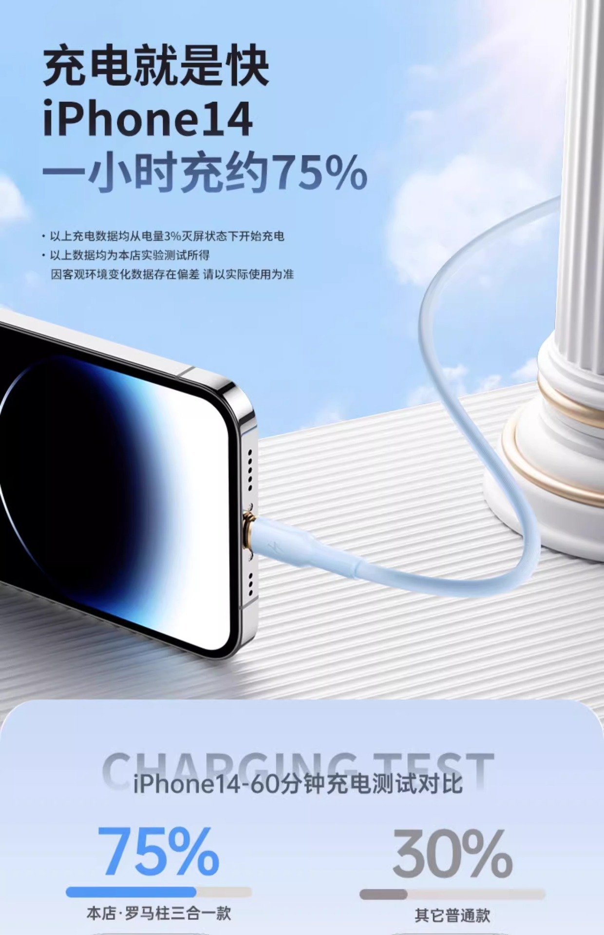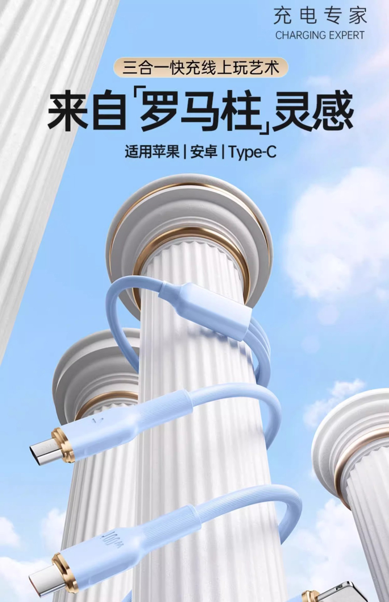 • 100w 초고속 충전 [Yuanfeng Blue] 쓰리인원 고속 충전 케이블
