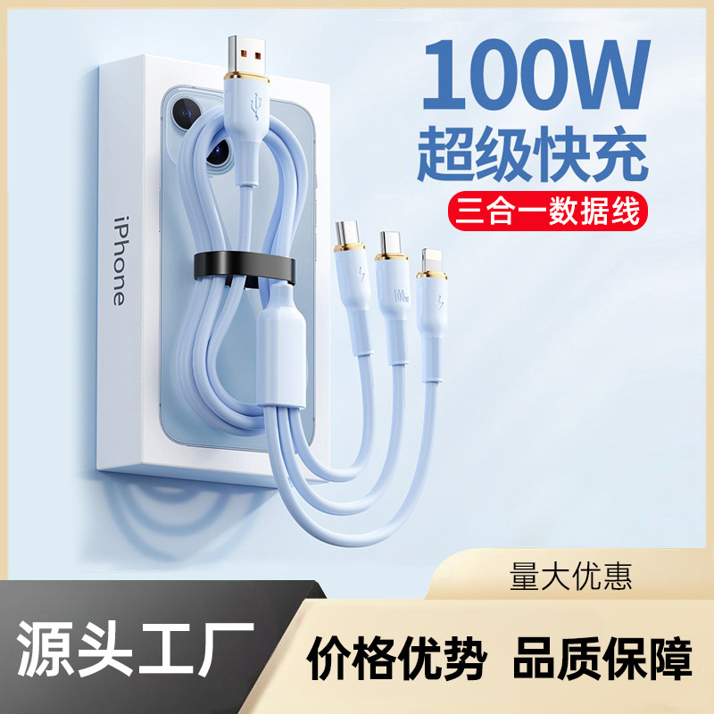 데이터 케이블 3 대 1 100w 초고속 충전 1 드래그 3 충전기 다기능 애플 화웨이 안드로이드