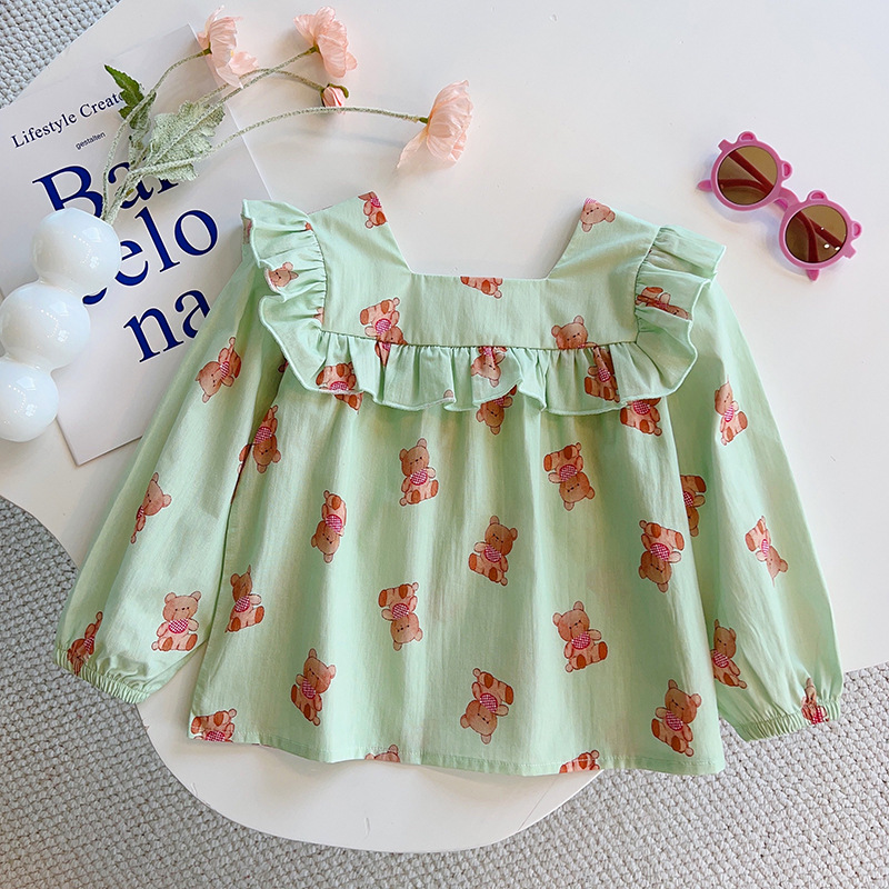 어린이 봄 새로운 봄, 가을 긴팔 스타일 순수 코튼 한국 스타일 셔츠 달콤한 아기 소녀 소녀 스퀘어 칼라스토어 가기