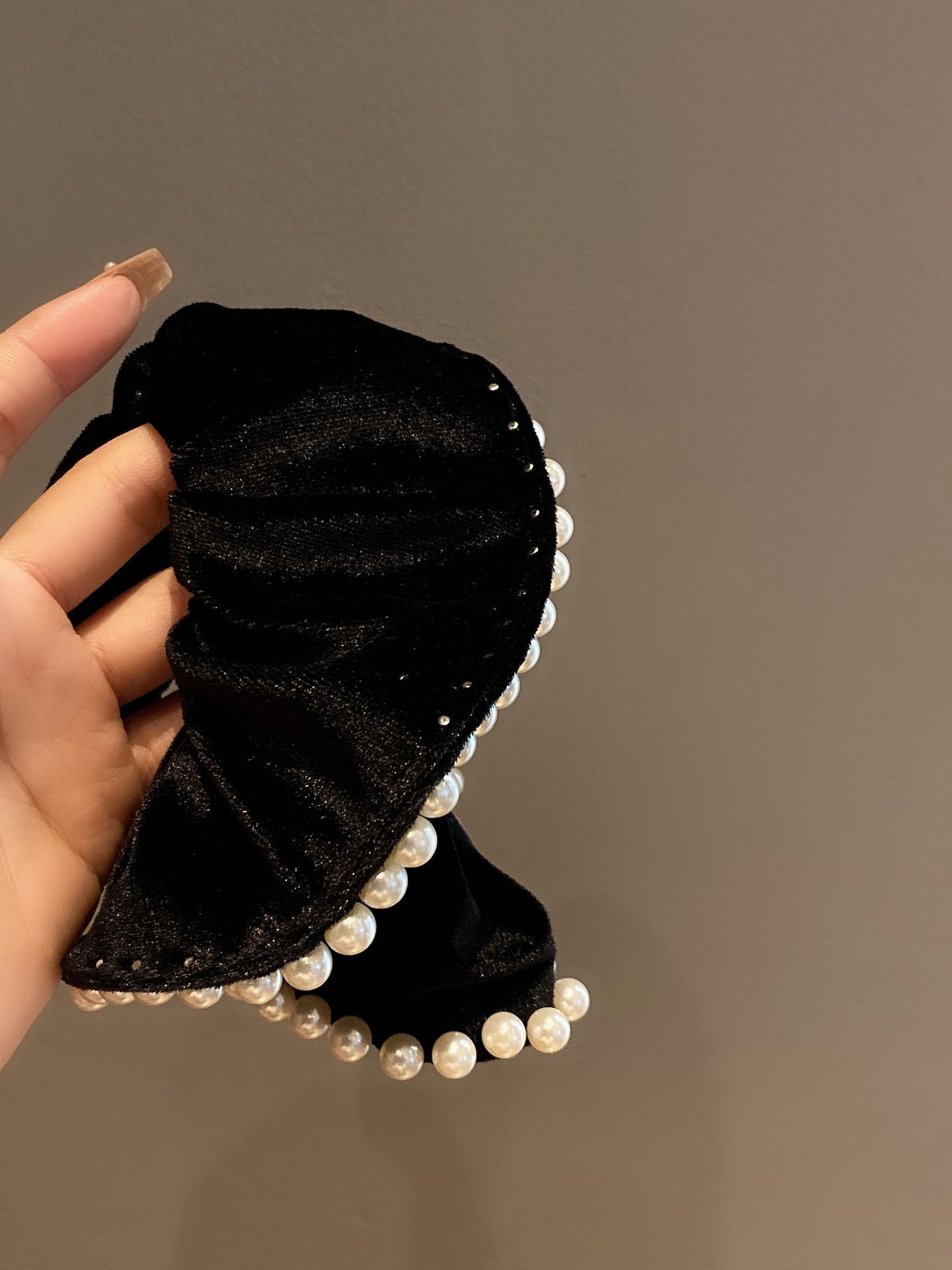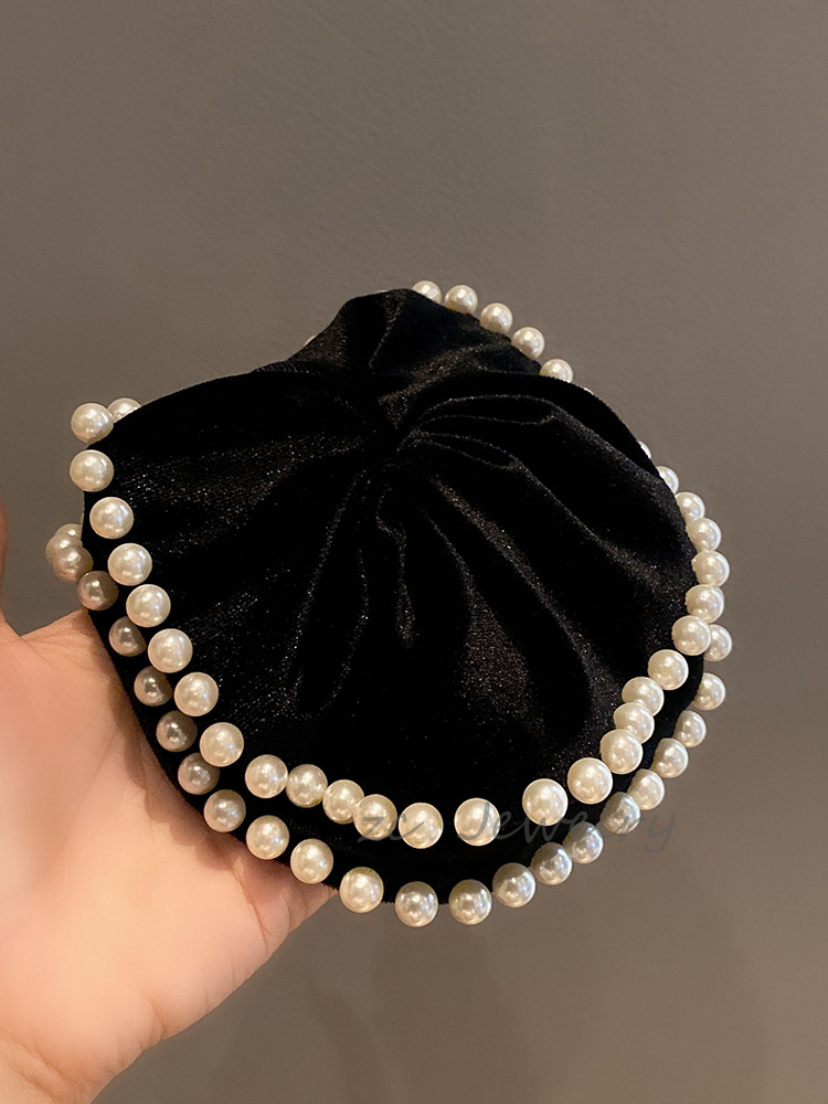 빈티지 블랙 벨벳 진주 대형 창자 링 여성용 하이 엔드 백 헤드 프렌치 우아한 타이 로프 우아한 틈새 헤어 액세서리스토어 가기