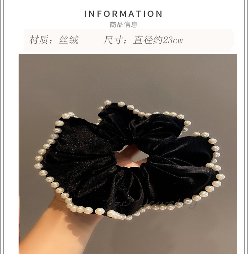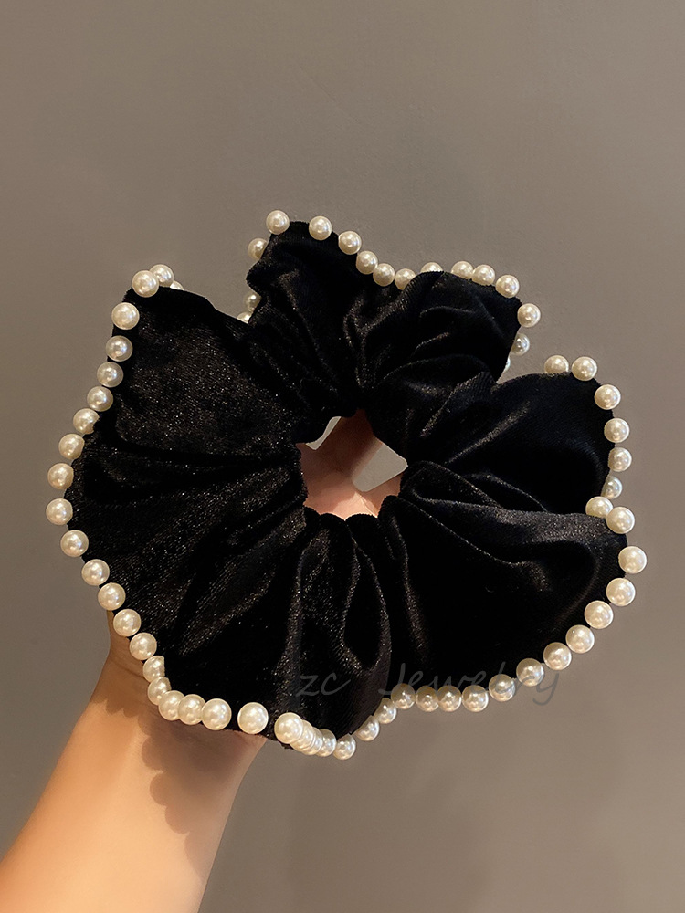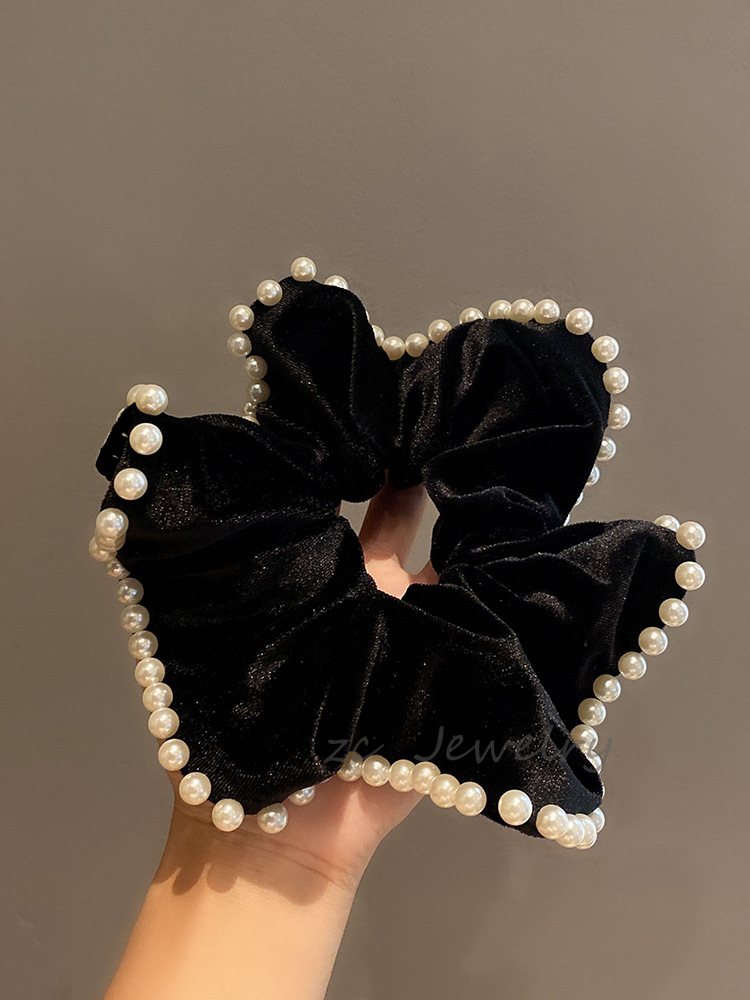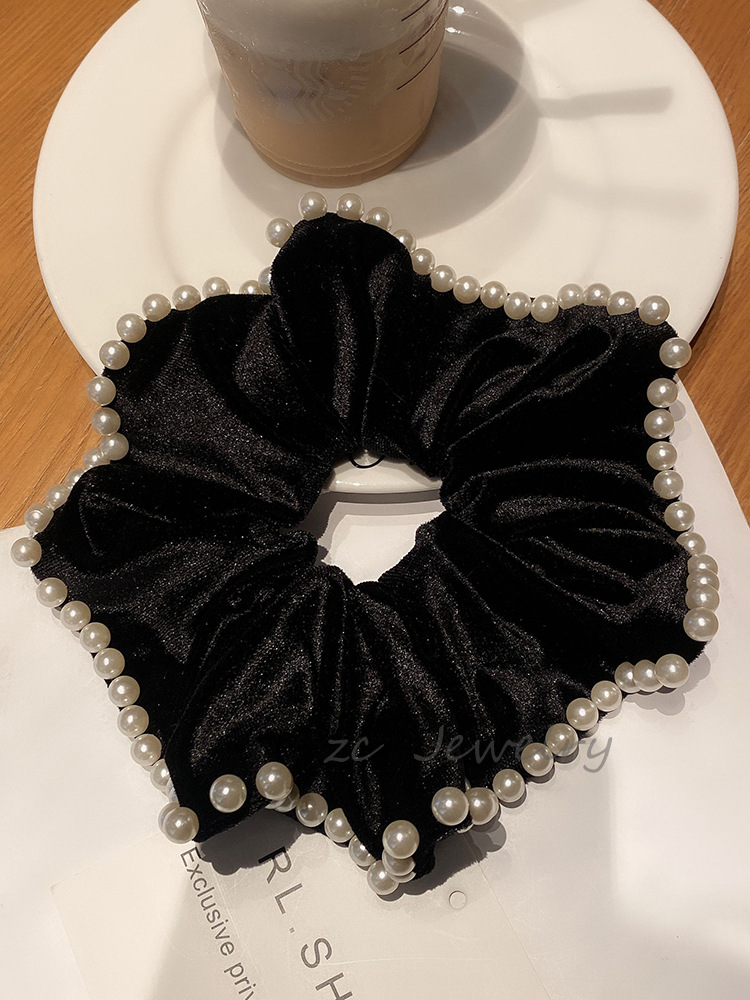 빈티지 블랙 벨벳 진주 대형 창자 링 여성용 하이 엔드 백 헤드 프렌치 우아한 타이 로프 우아한 틈새 헤어 액세서리
