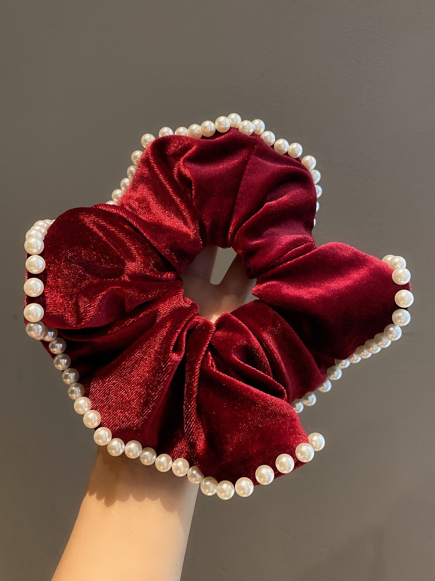 • 버건디 벨벳 진주 대장 반지