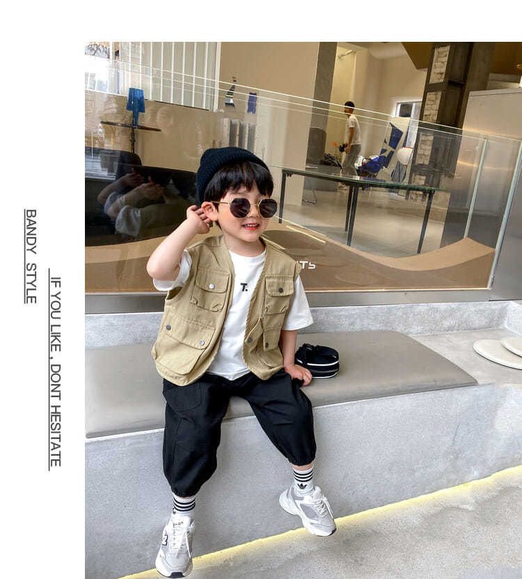 소년 작업복 조끼 2025 어린이 잘 생긴 한국 스타일 조끼 아기 봄 옷 유행 조끼 소년 코트스토어 가기