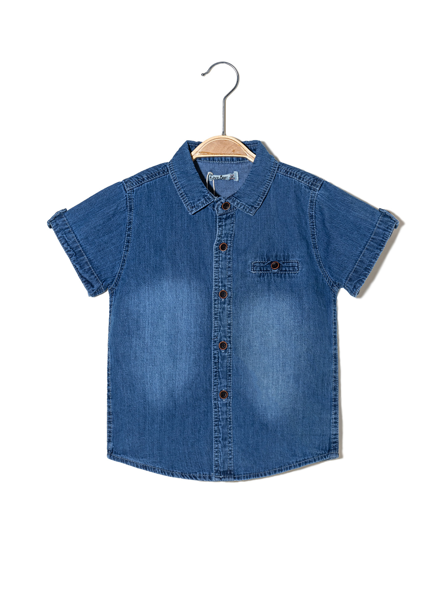 대외 무역 어린이 셔츠 제조 업체 도매 1-14 세 면 데님 셔츠 여름 어린이 반팔 데님 셔츠스토어 가기