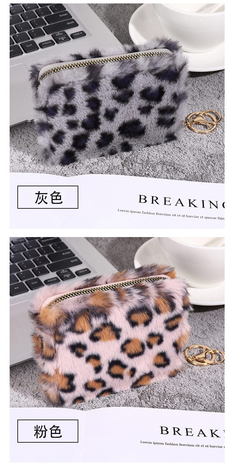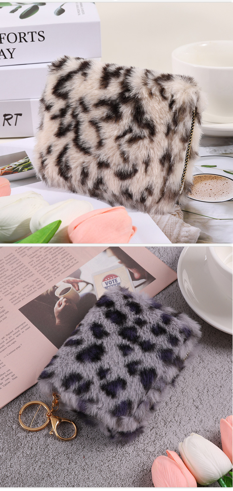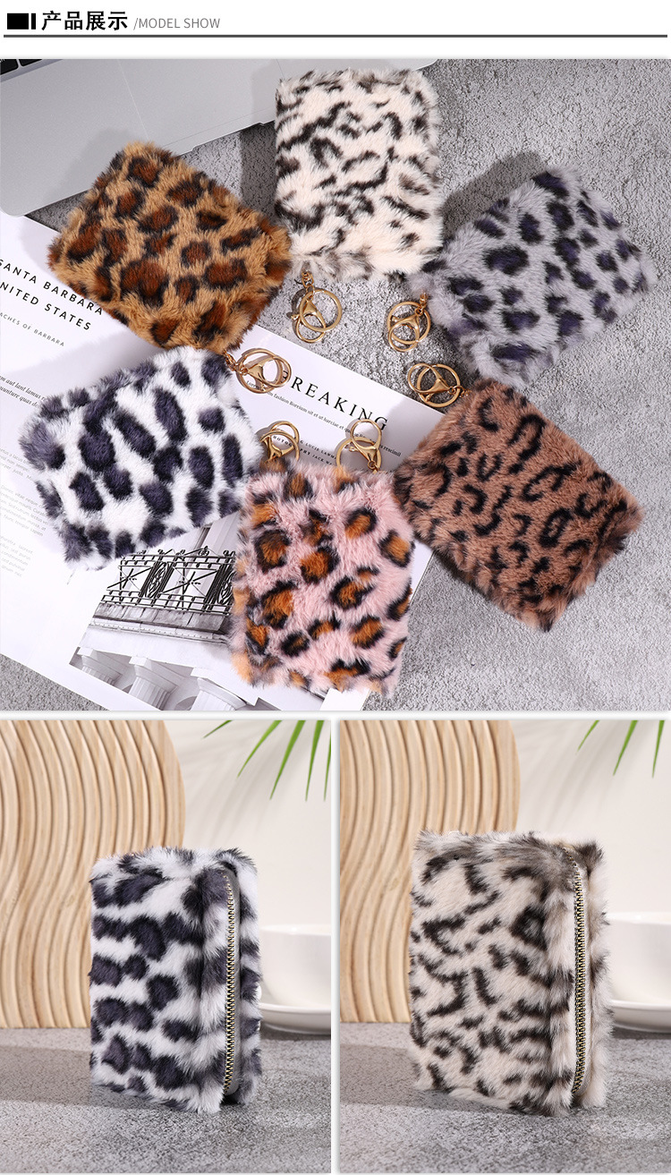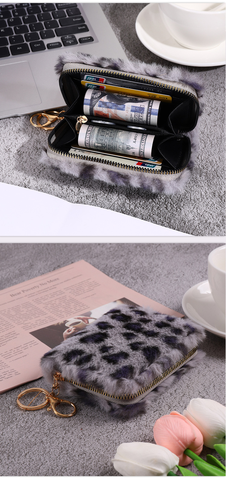 국경을 넘는 신상품 플러시 동전 지갑 패션 레오파드 패턴 지갑 독특한 심플 가방 털이 많은 카드 지갑 제조업체스토어 가기