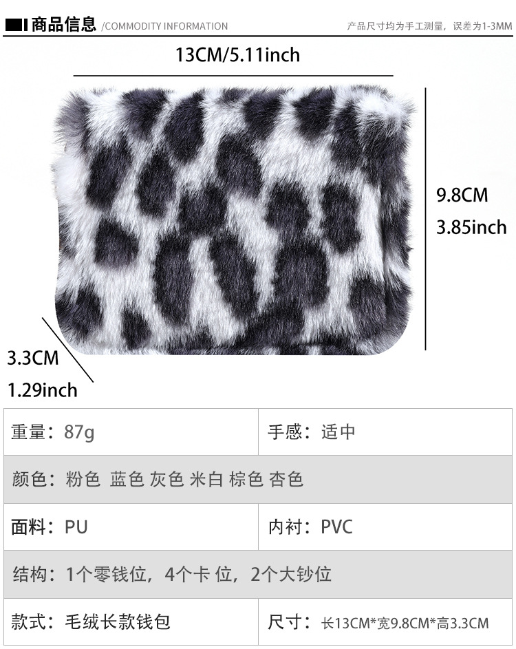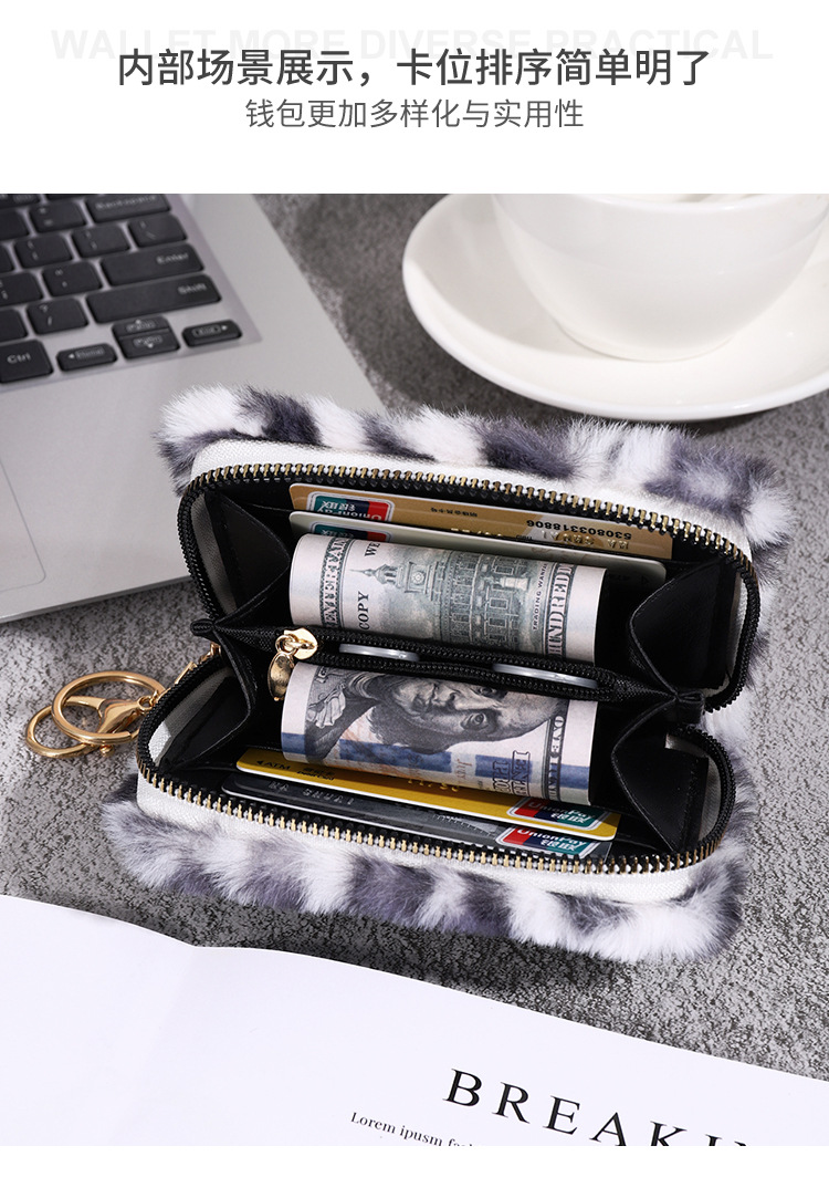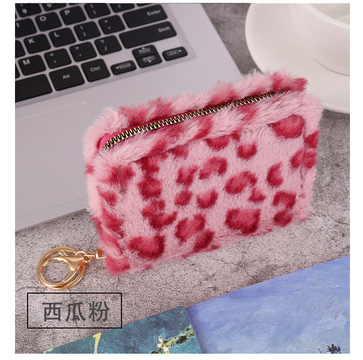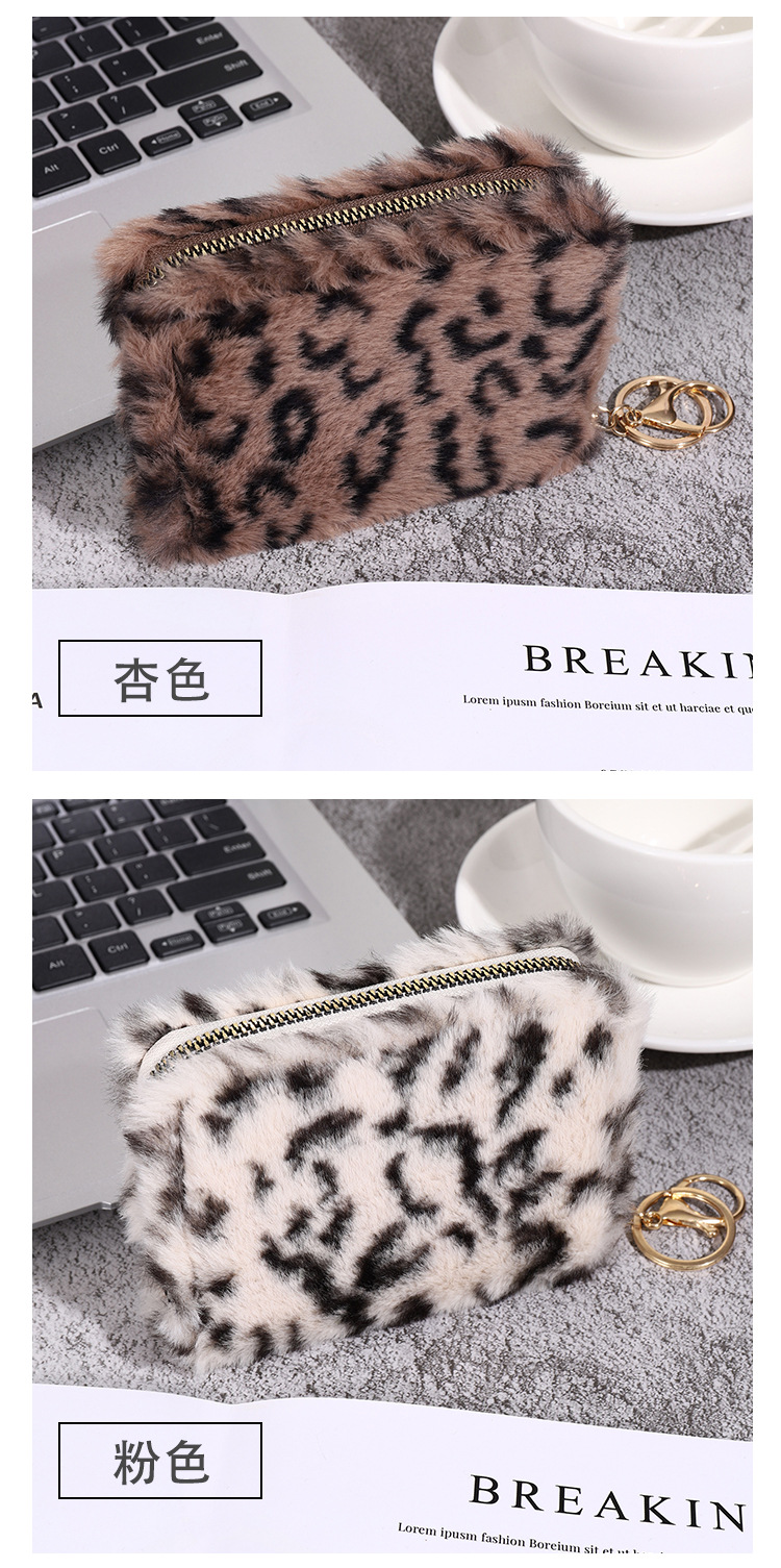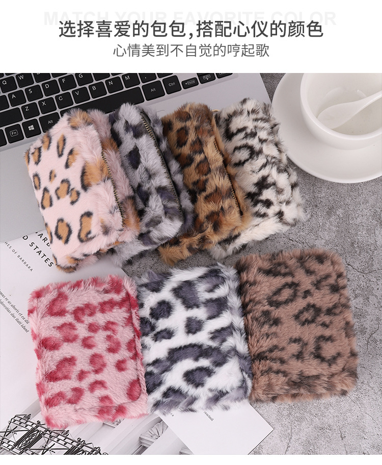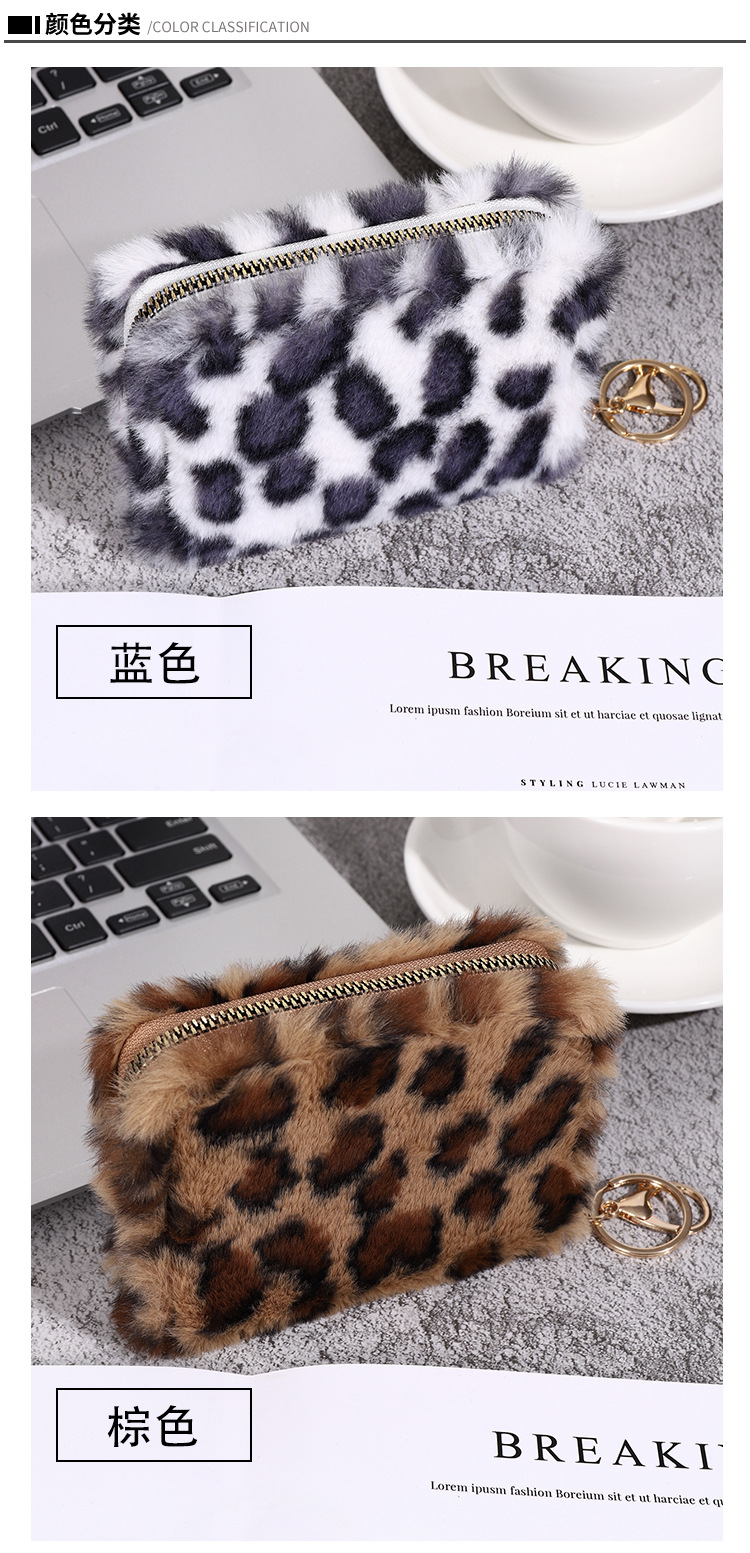 국경을 넘는 신상품 플러시 동전 지갑 패션 레오파드 패턴 지갑 독특한 심플 가방 털이 많은 카드 지갑 제조업체스토어 가기