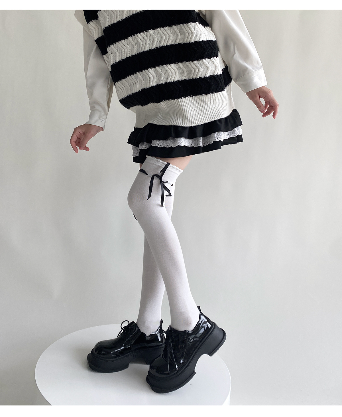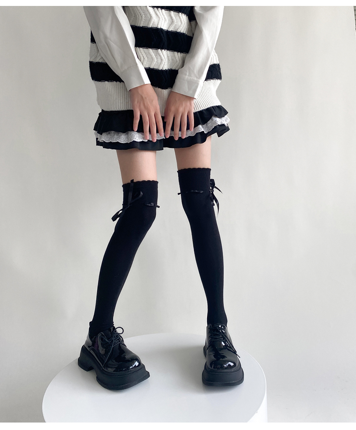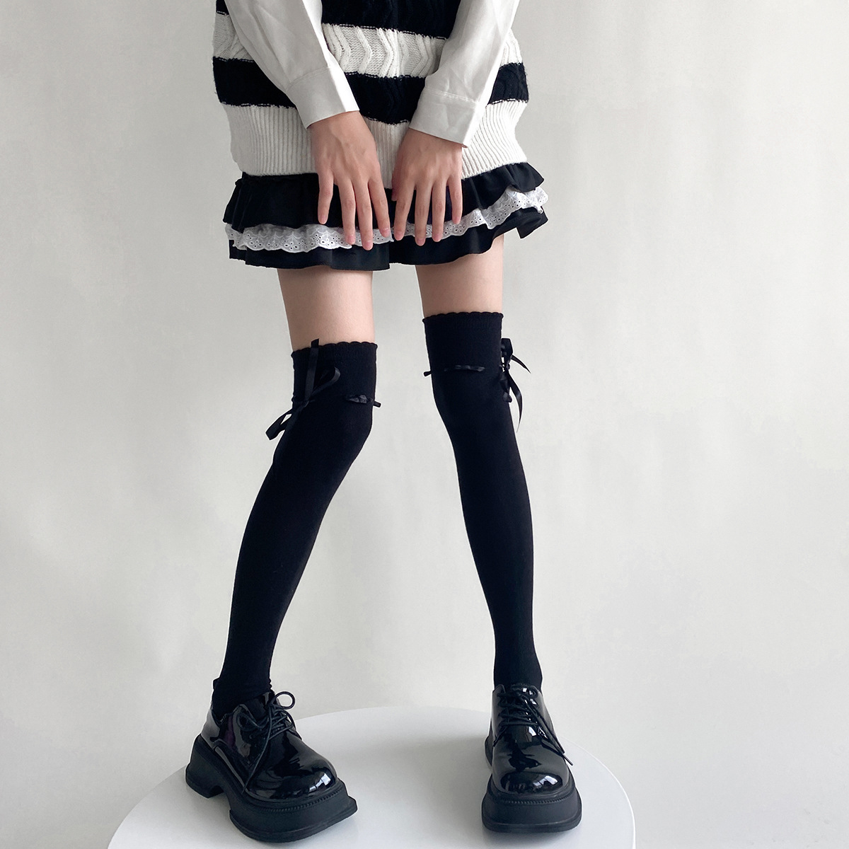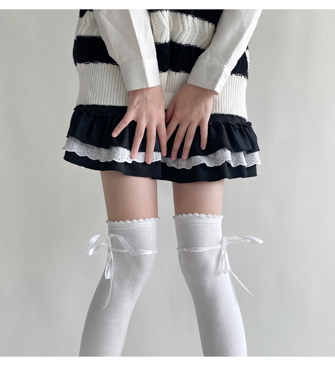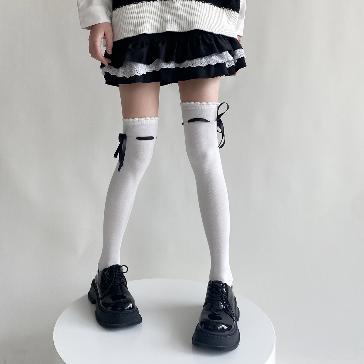 순수한 욕망 스타일 화이트 리본 활 높은 스타킹 여성용 귀여운 소녀 스타일 활 무릎 위 양말 면 스타킹스토어 가기