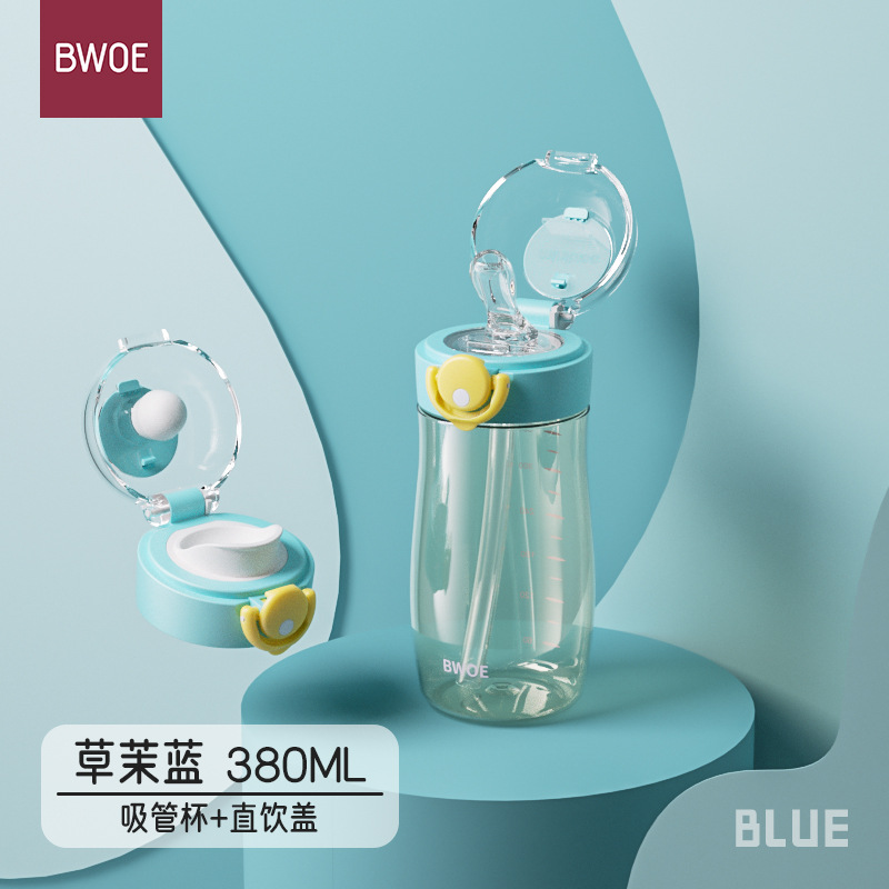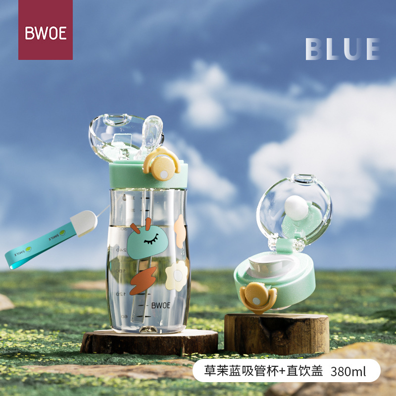• 빨대 파랑 빨대 컵 380ml + 직접 음료 뚜껑