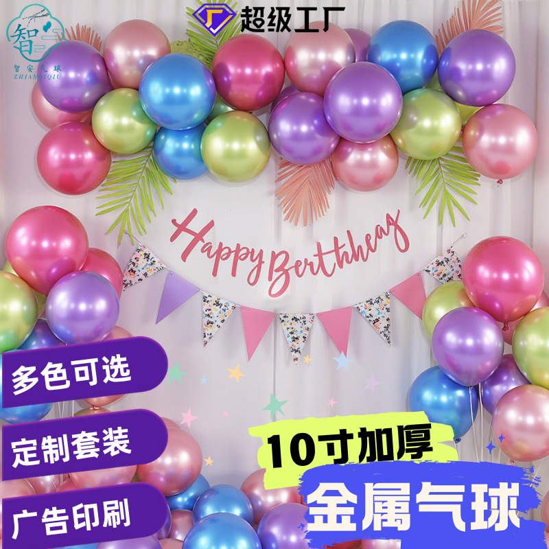 도매 10inch 풍선 크롬 금속 인쇄 맞춤형 라텍스 생일 세트 웨딩 장식 웨딩 레이아웃 크로스보더