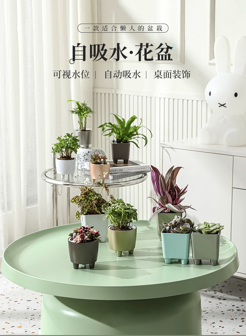플라스틱 다육 화분 작은 화분 미니 귀여운 작은 사각형 분지 작은 원형 분지 작은 직경 방수 자기 흡수 화분스토어 가기