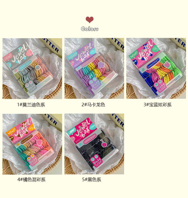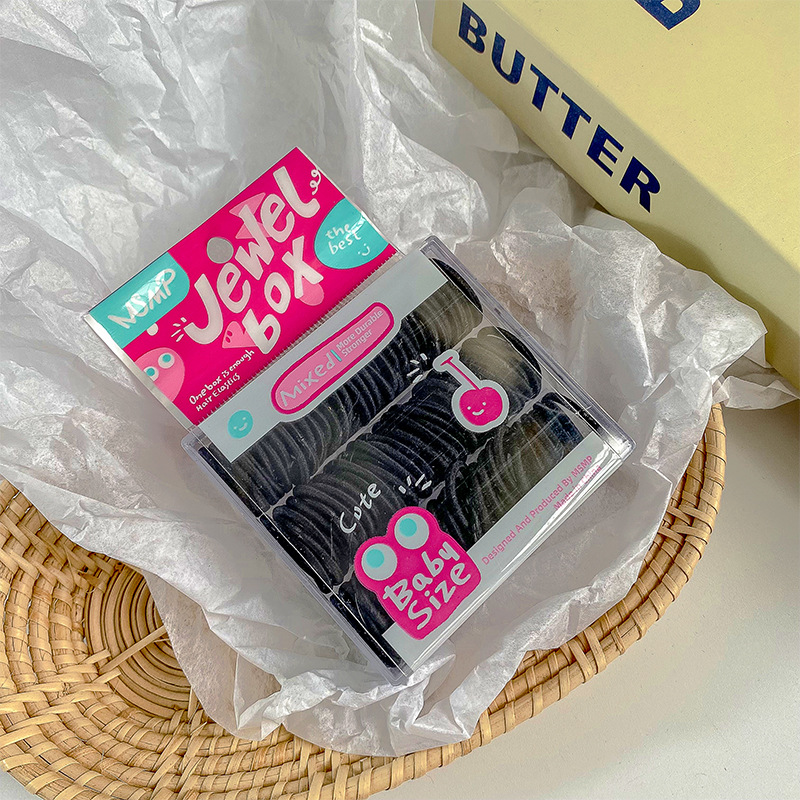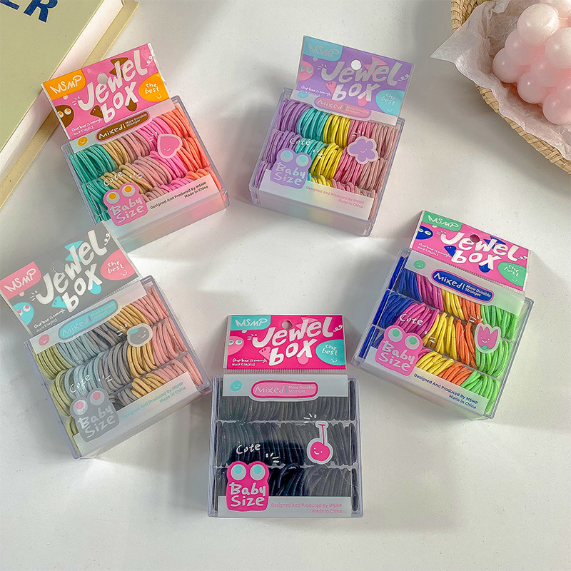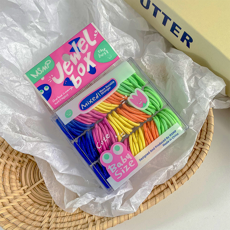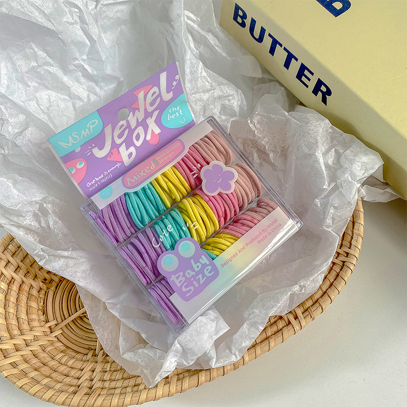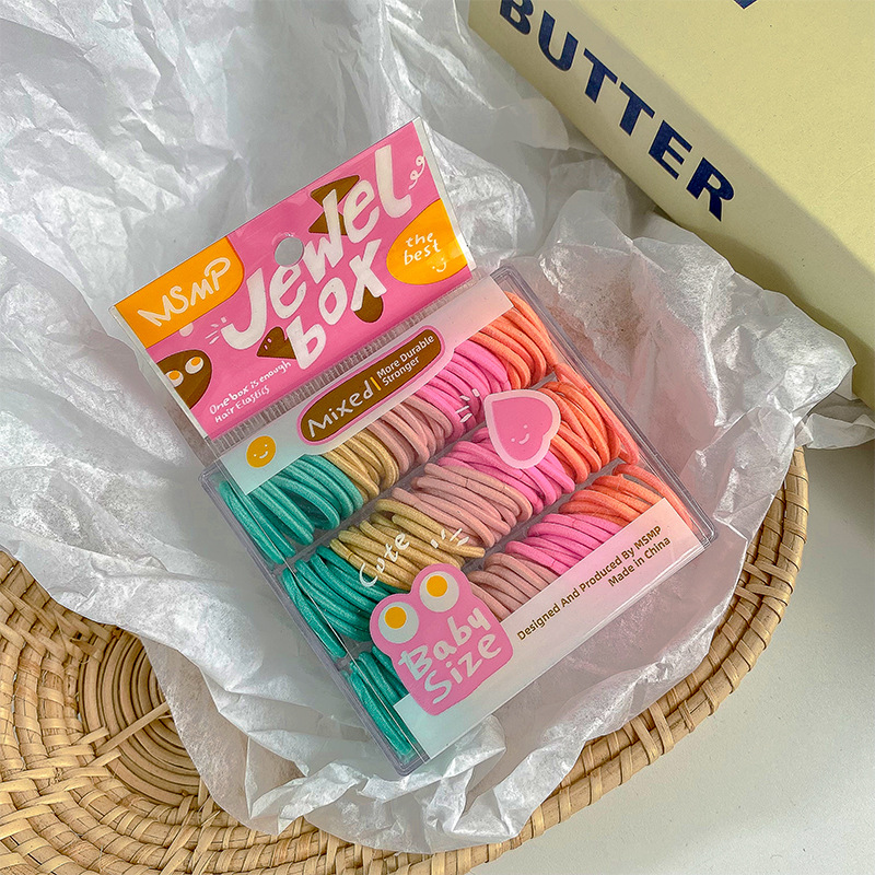 귀여운 캔디 컬러 박스형 엄지 작은 헤어 밴드 없음 머리 부상 도파민 소녀 미니 멀티 컬러 혼합 고무 밴드 헤어 로프