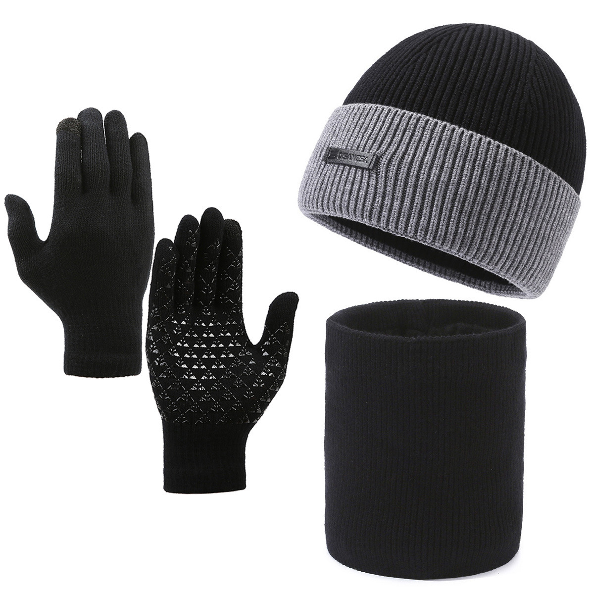 • 접합 2 색 따뜻한 3 피스 세트 (모자 목 세트 장갑)