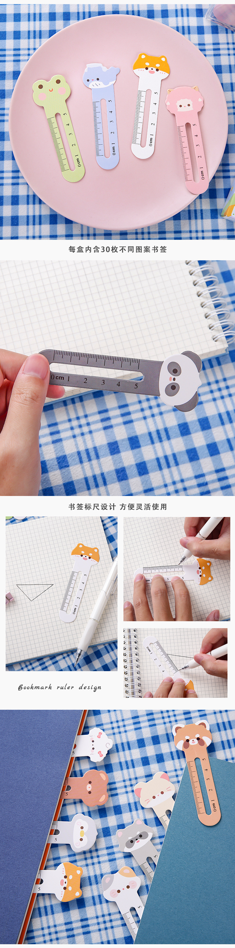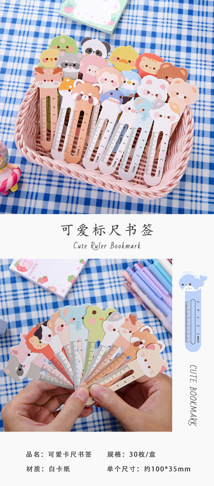 어린이와 초등학생을 위한 귀여운 작은 동물 눈금자 책갈피, 창의적인 만화 책갈피 클립, 종이 보상 학생 선물