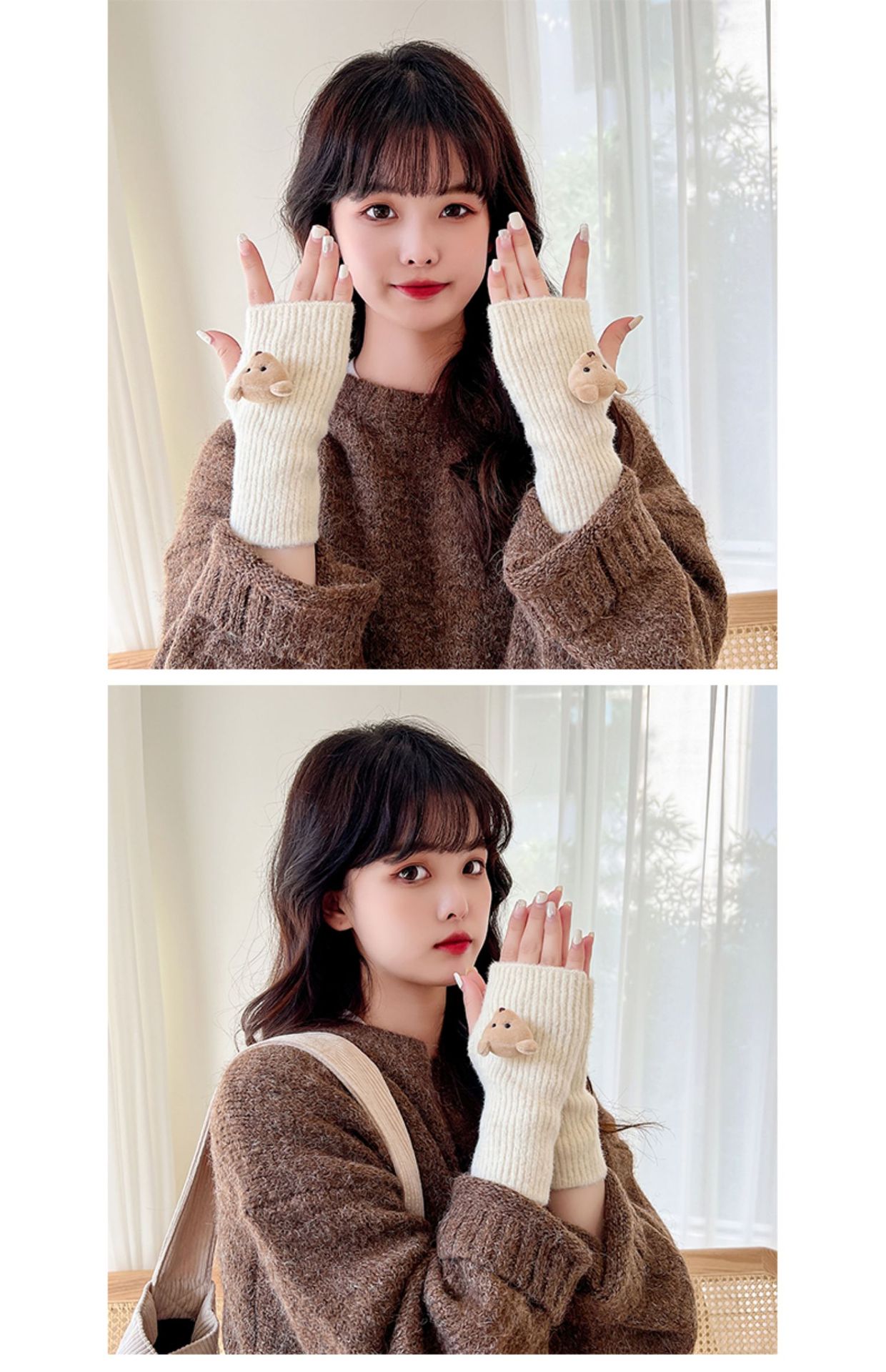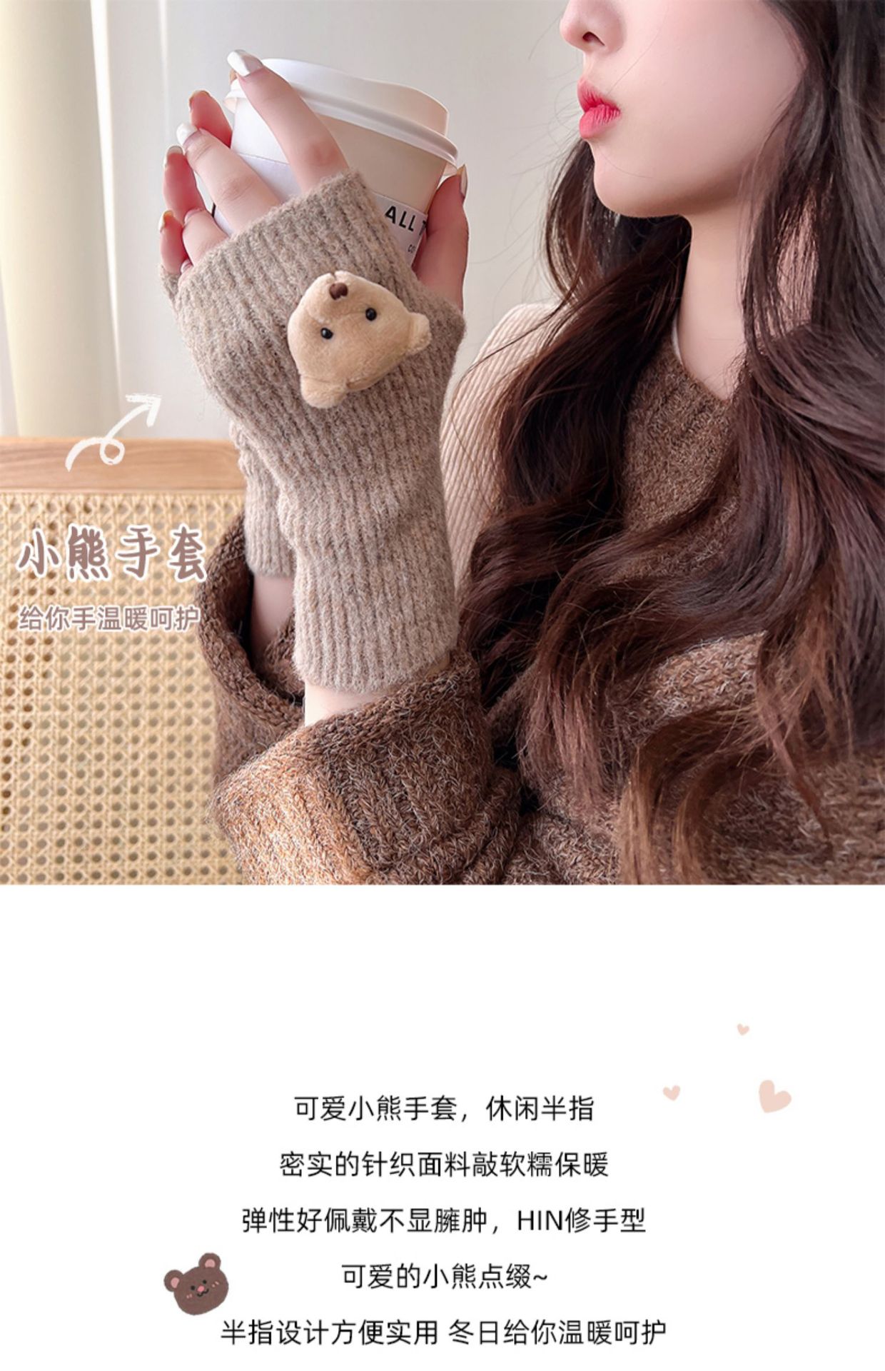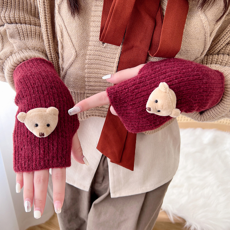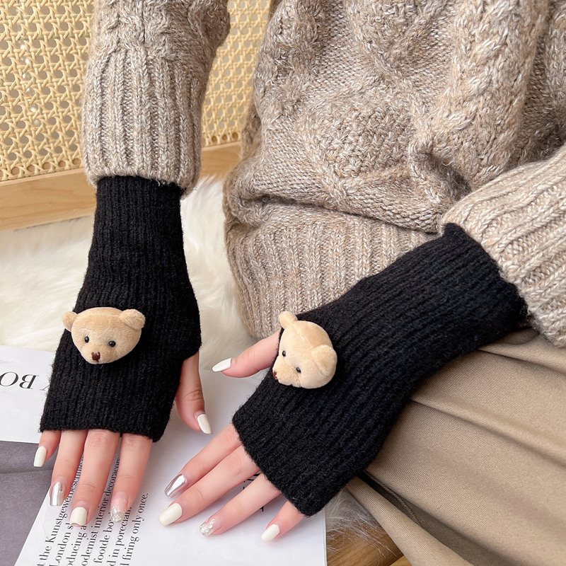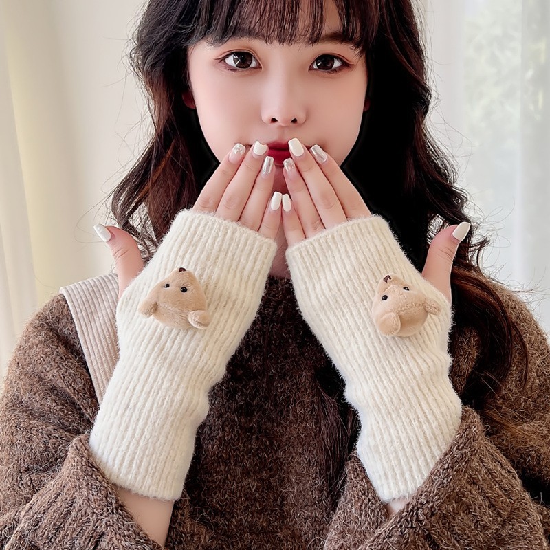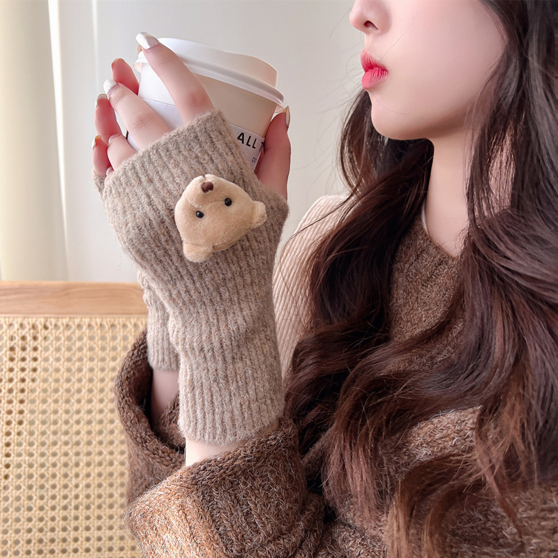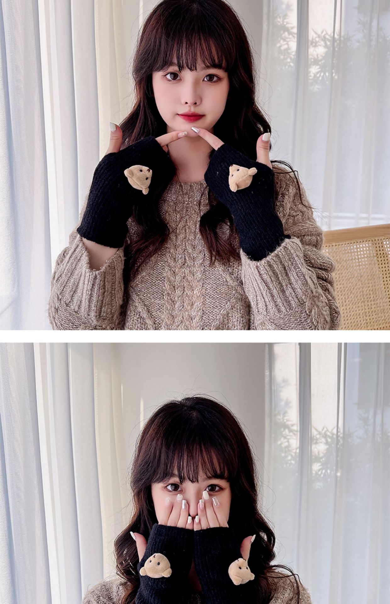 여자 겨울 학생들을위한 장갑 가을과 겨울 따뜻한 부드러운 소녀 귀여운 양모 니트 베어 한국 반 손가락 두껍게
