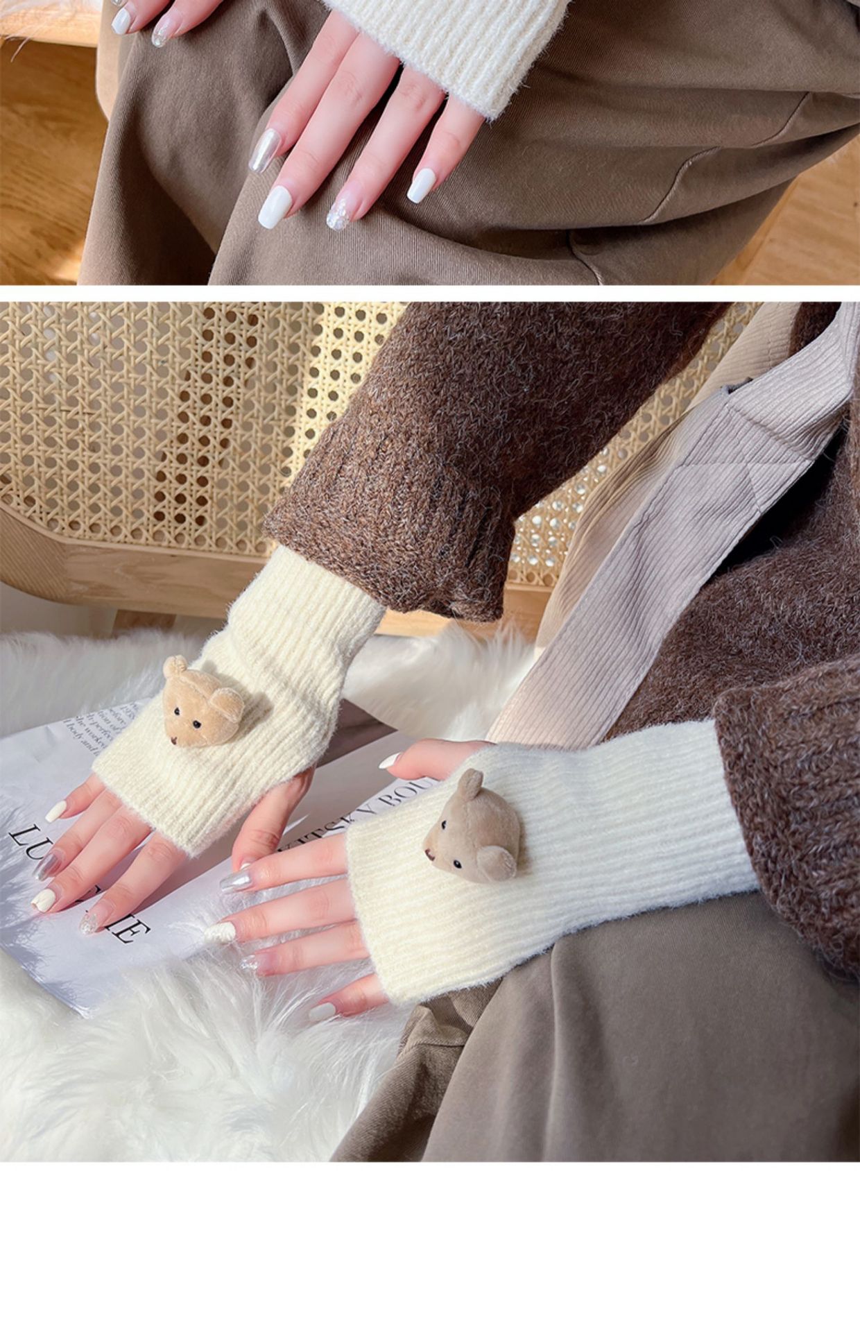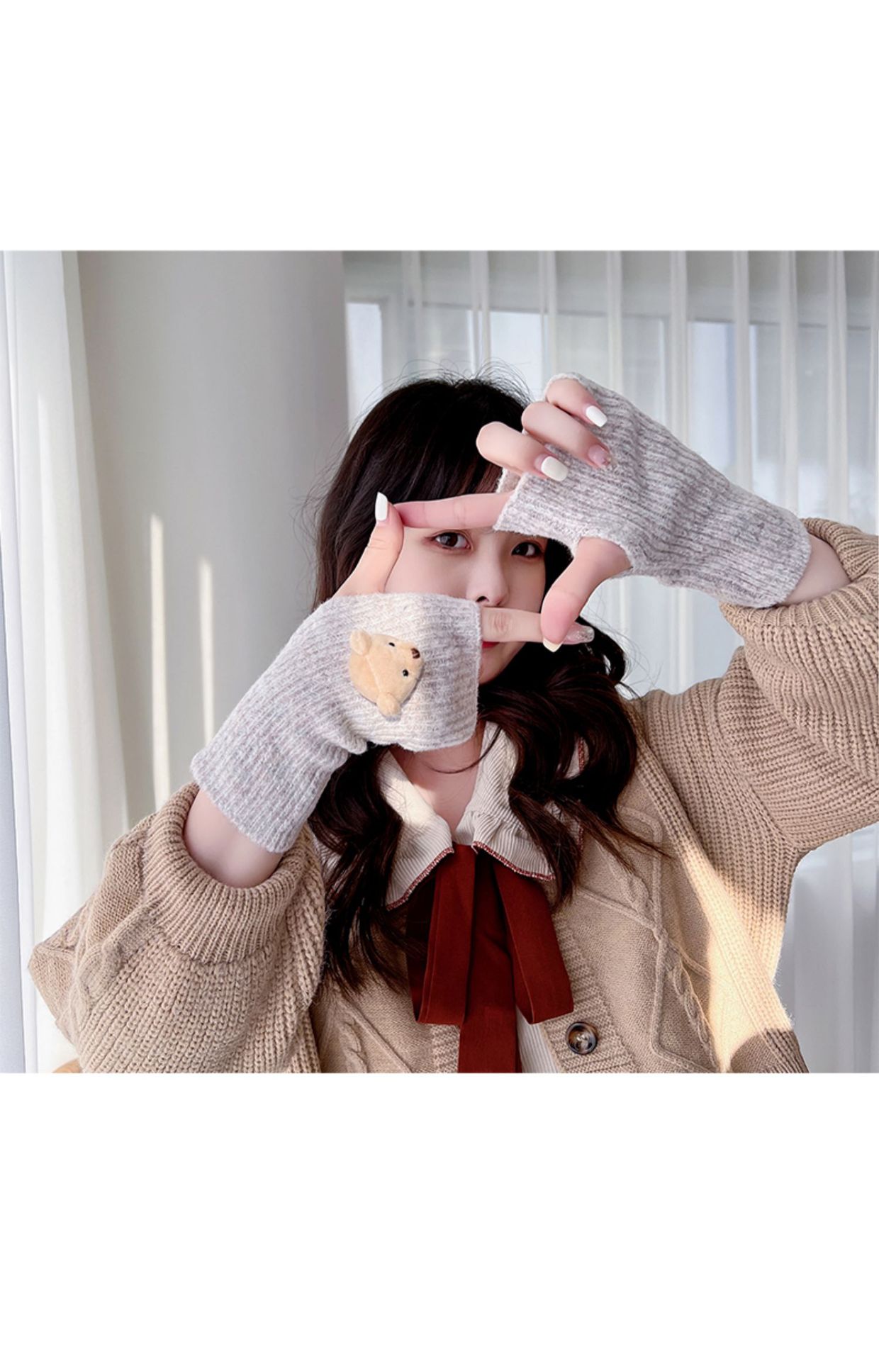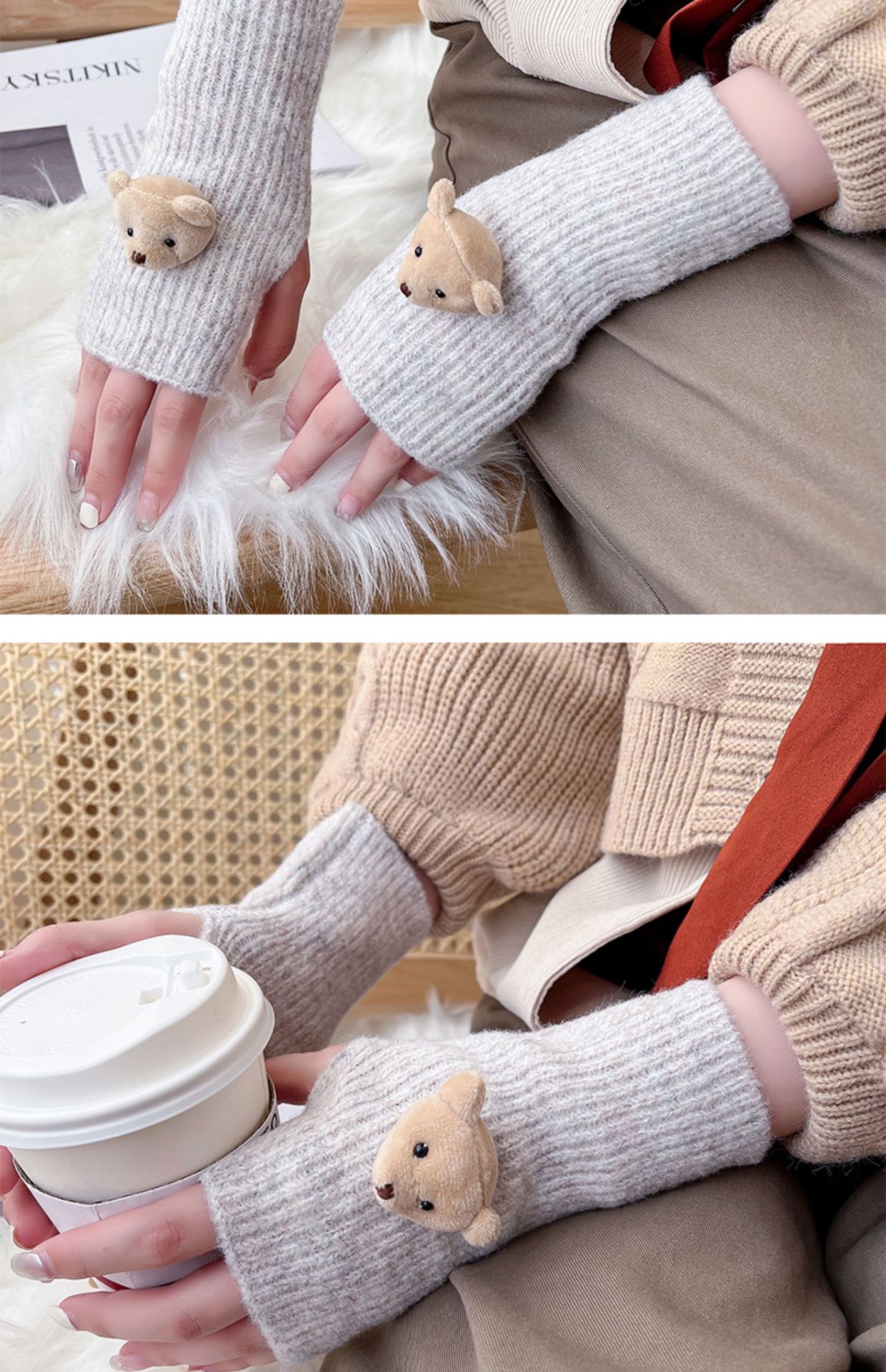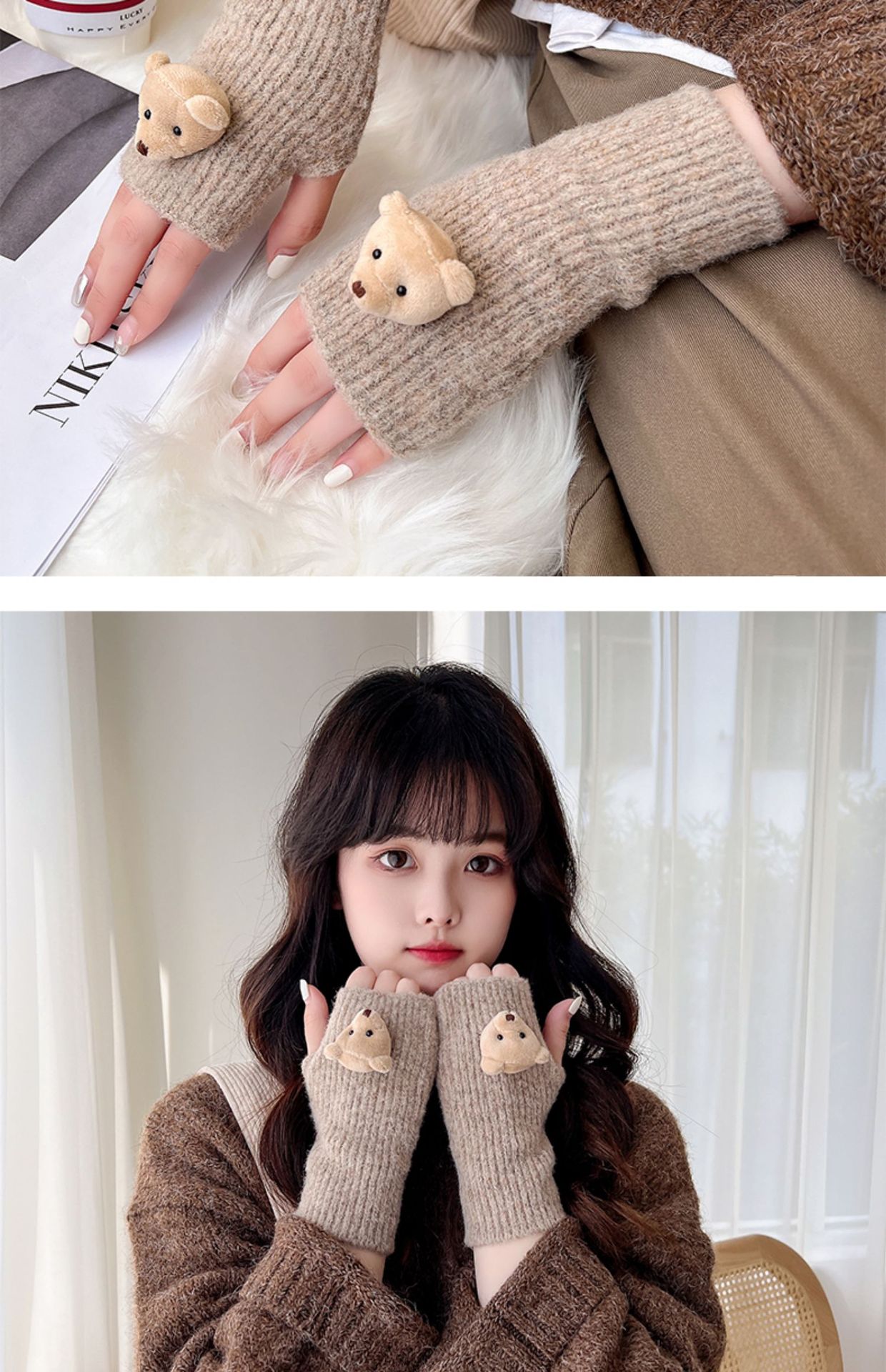 여자 겨울 학생들을위한 장갑 가을과 겨울 따뜻한 부드러운 소녀 귀여운 양모 니트 베어 한국 반 손가락 두껍게
