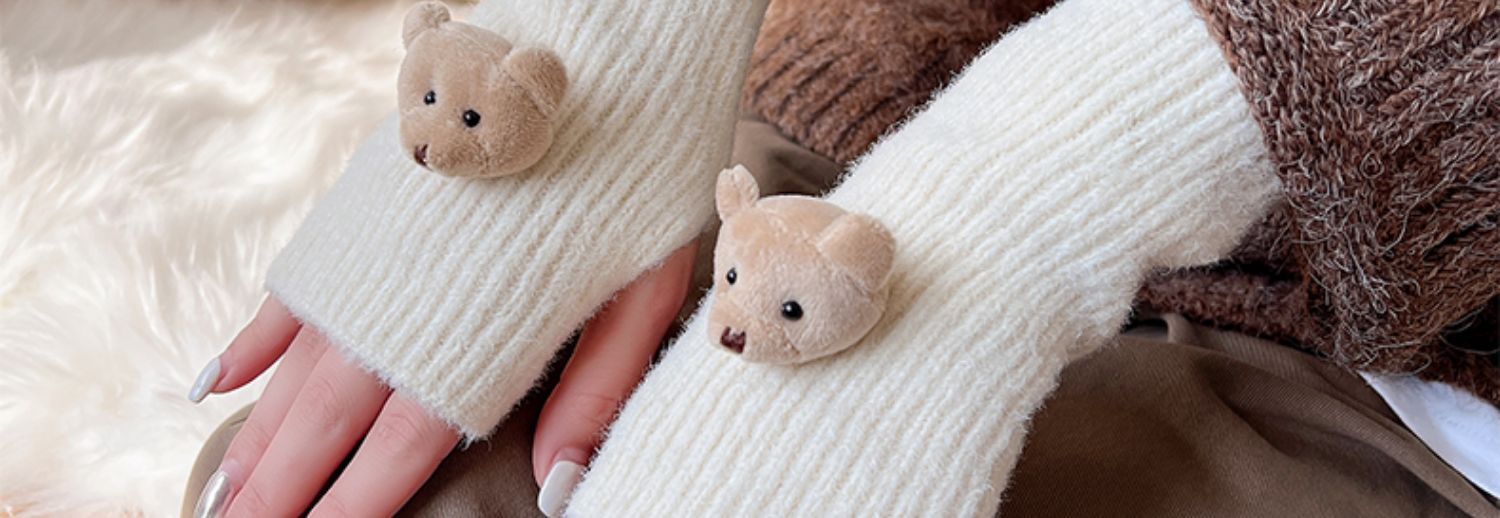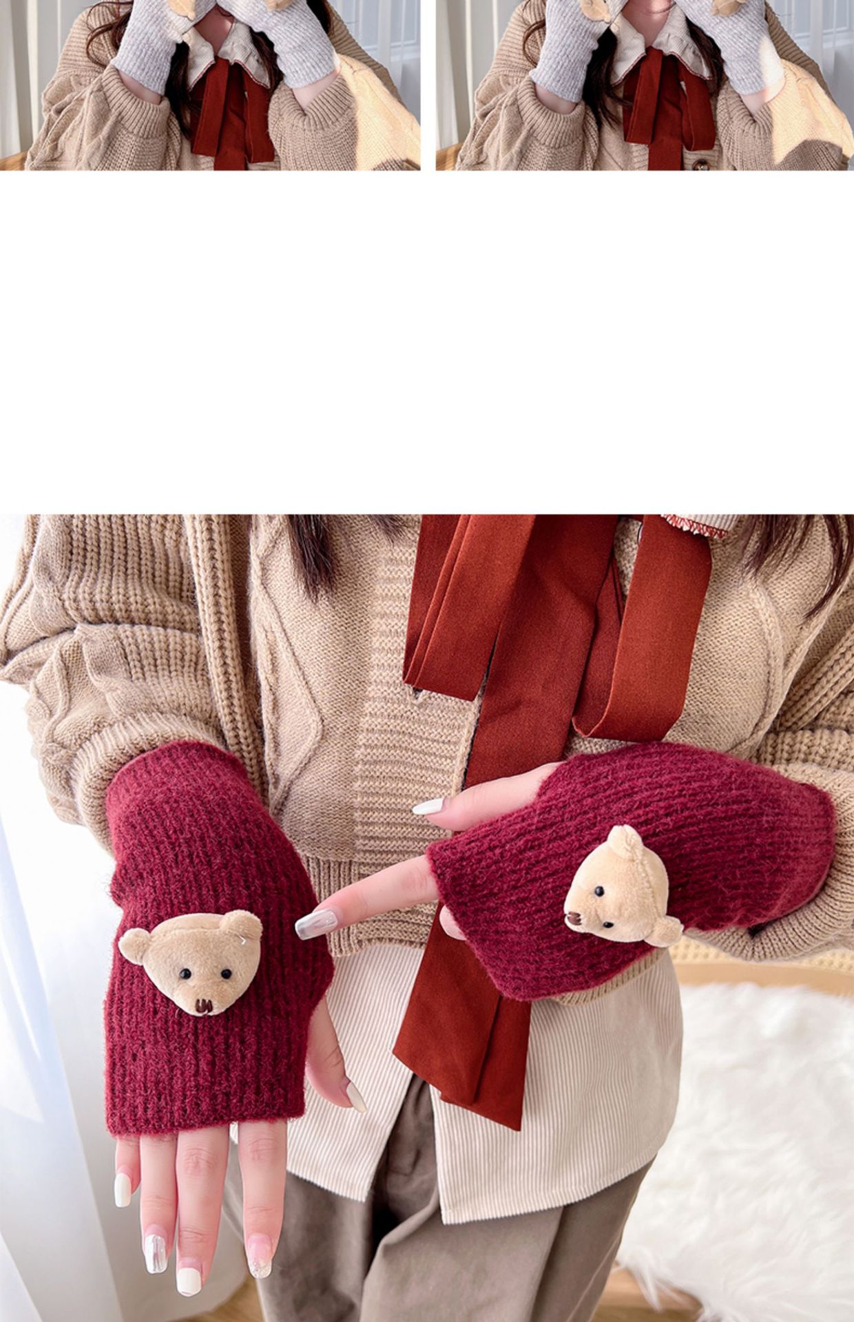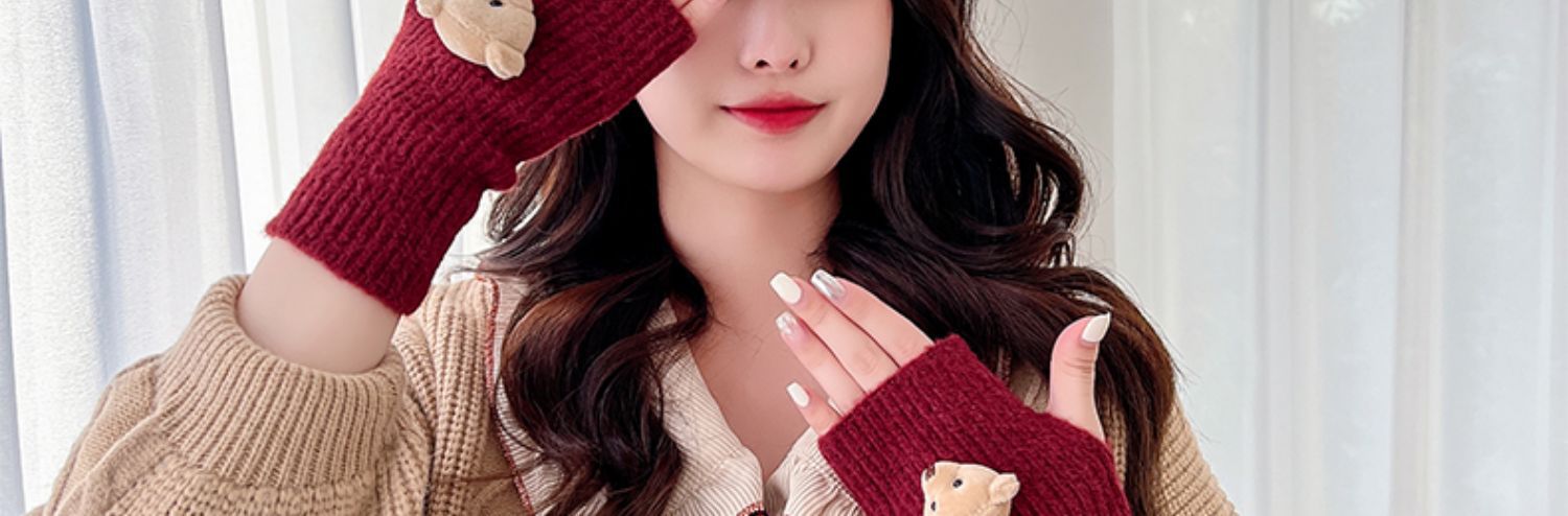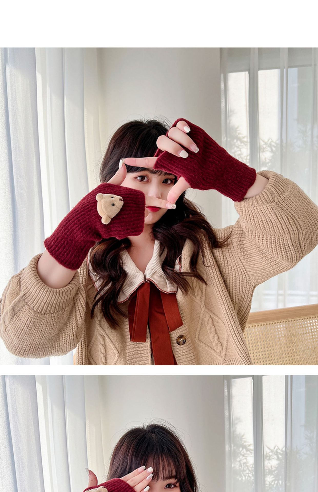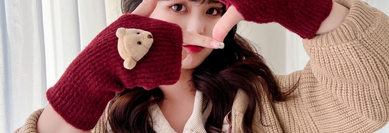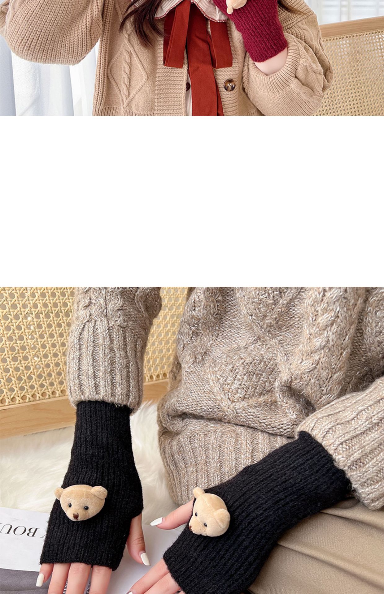 여자 겨울 학생들을위한 장갑 가을과 겨울 따뜻한 부드러운 소녀 귀여운 양모 니트 베어 한국 반 손가락 두껍게