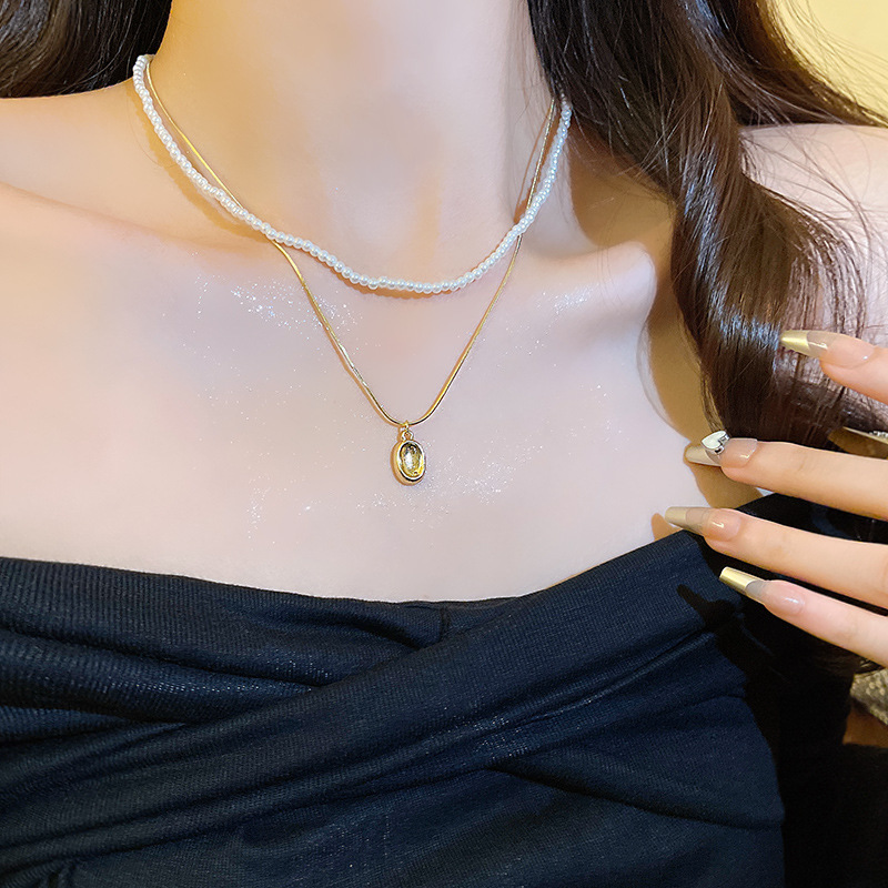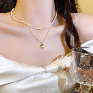 더블 레이어 작은 쌀 진주 목걸이 여성용 고급 디자인 센스 틈새 겹치기 액세서리 목걸이 쇄골 체인 심플 모든 매치스토어 가기