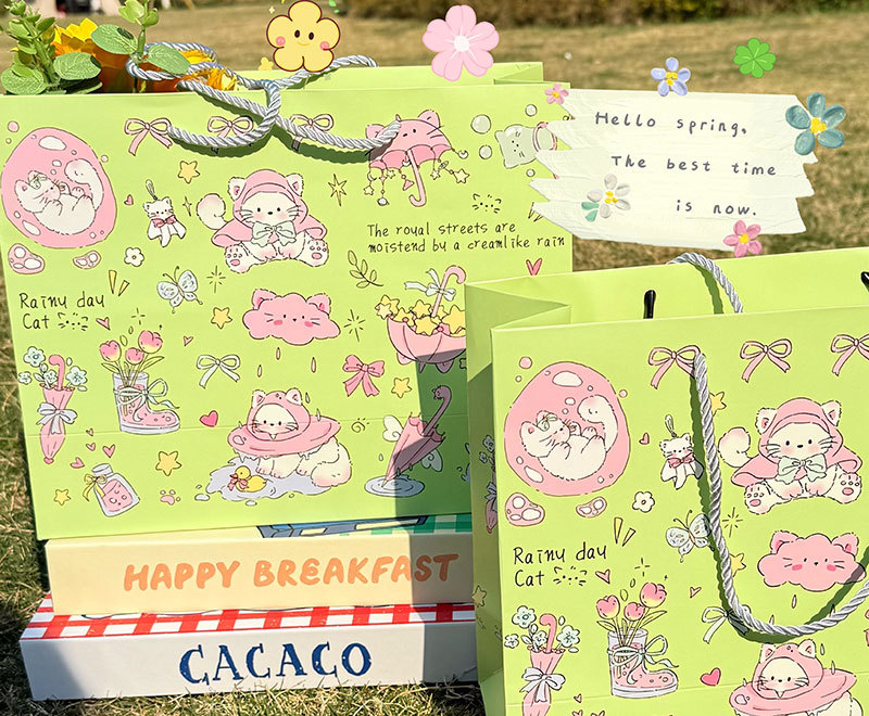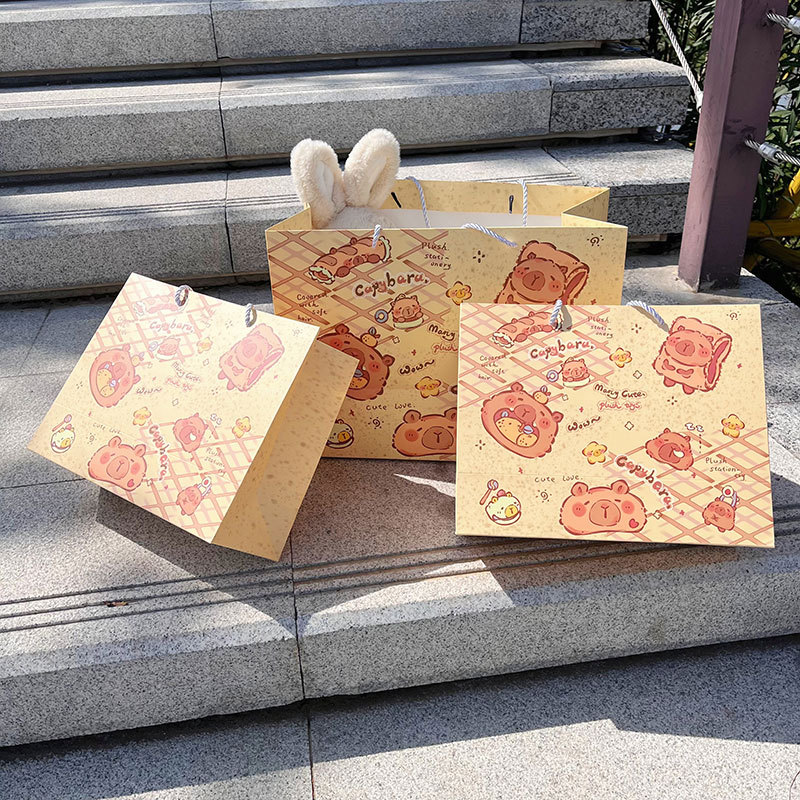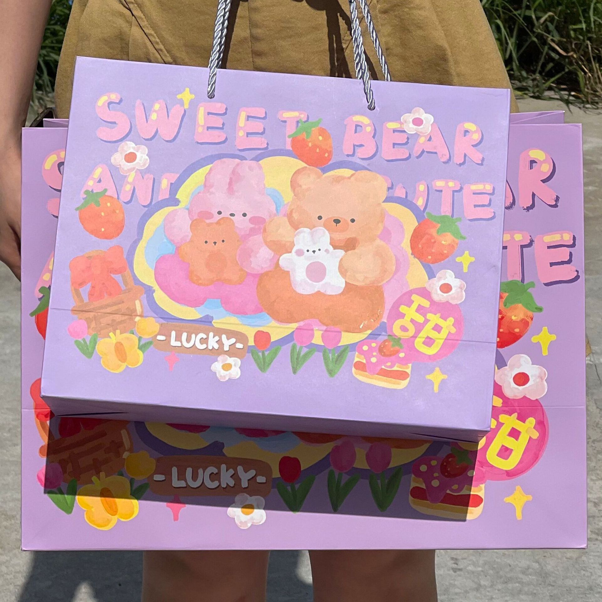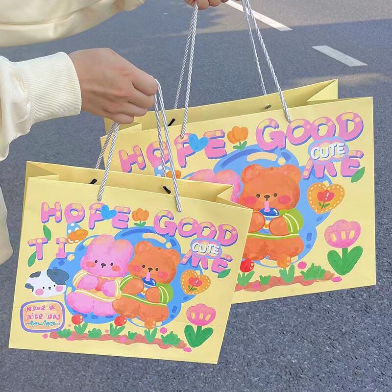 귀여운 낙서 생일 축하 하드 골판지 두꺼운 선물 가방 토트 가방 보관 가방 큰 선물 손 신발 상자