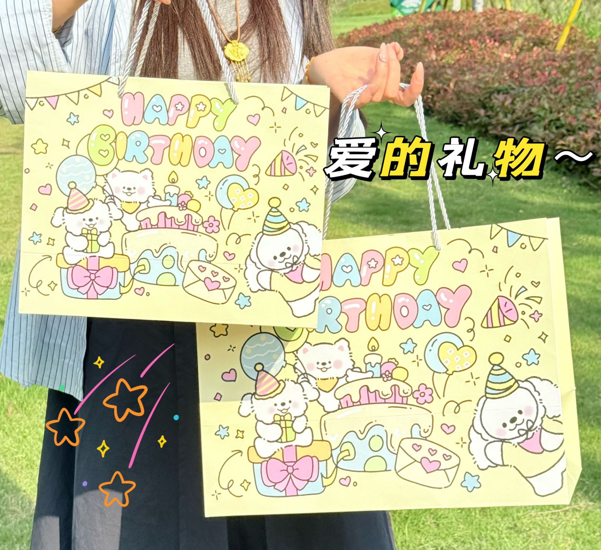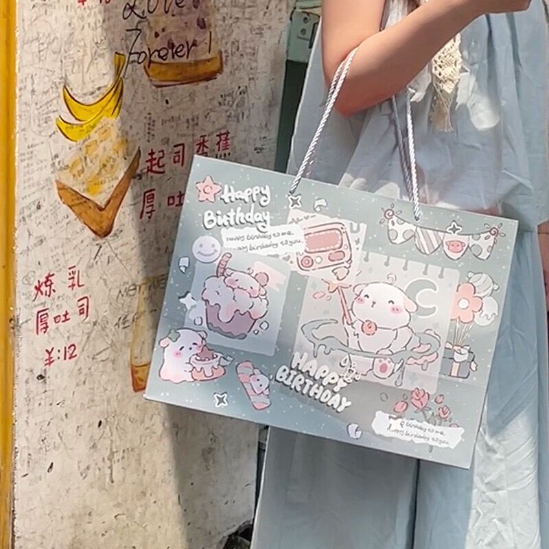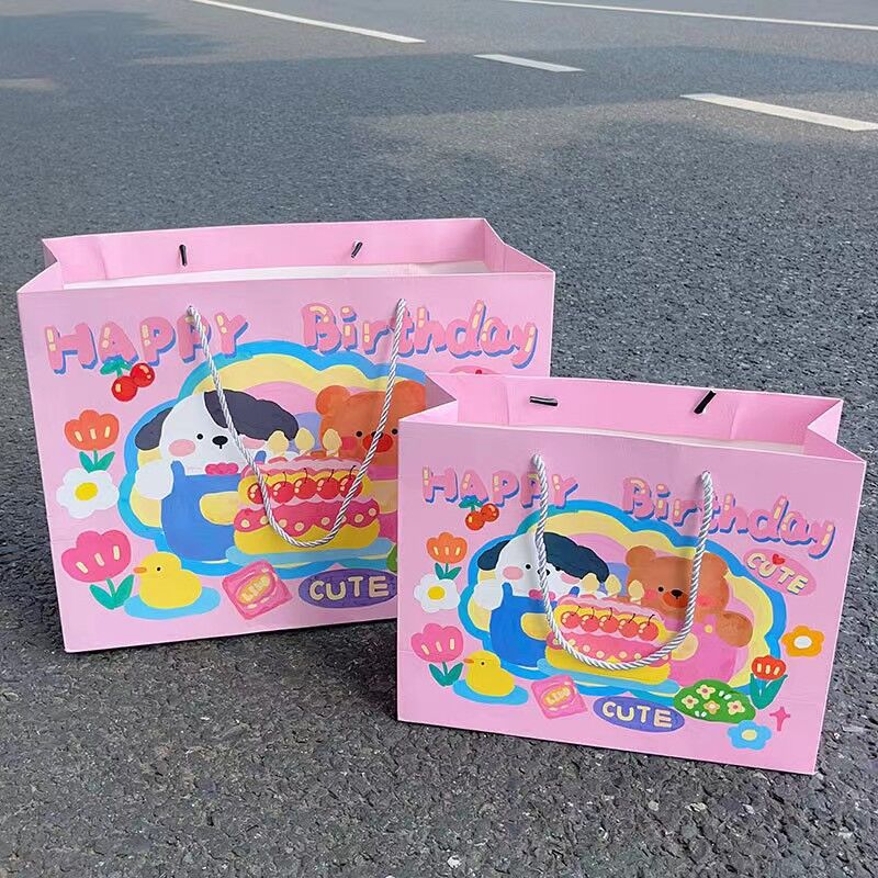 귀여운 낙서 생일 축하 하드 골판지 두꺼운 선물 가방 토트 가방 보관 가방 큰 선물 손 신발 상자스토어 가기