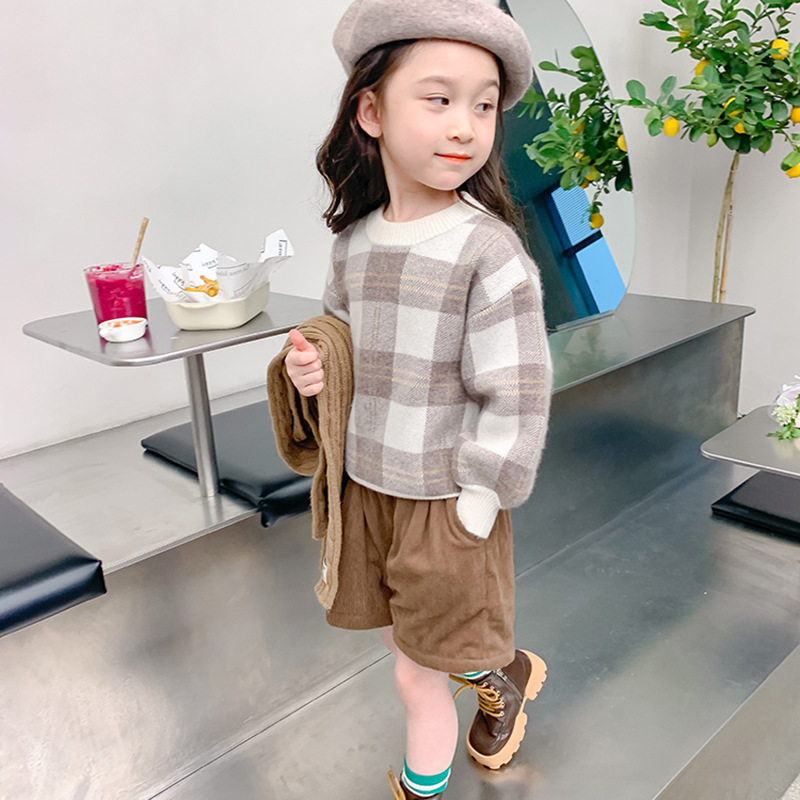 어린이 풀오버 기모 스웨터 새로운 가을과 겨울 한국 스타일 어린이 착용 서양 스타일 어린 소녀의 긴 소매 라운드 넥 탑 니트 스웨터스토어 가기