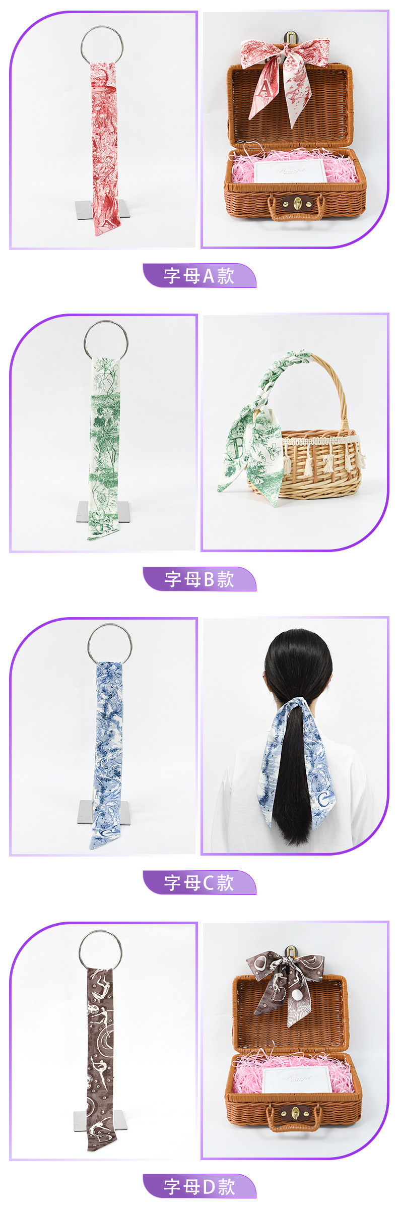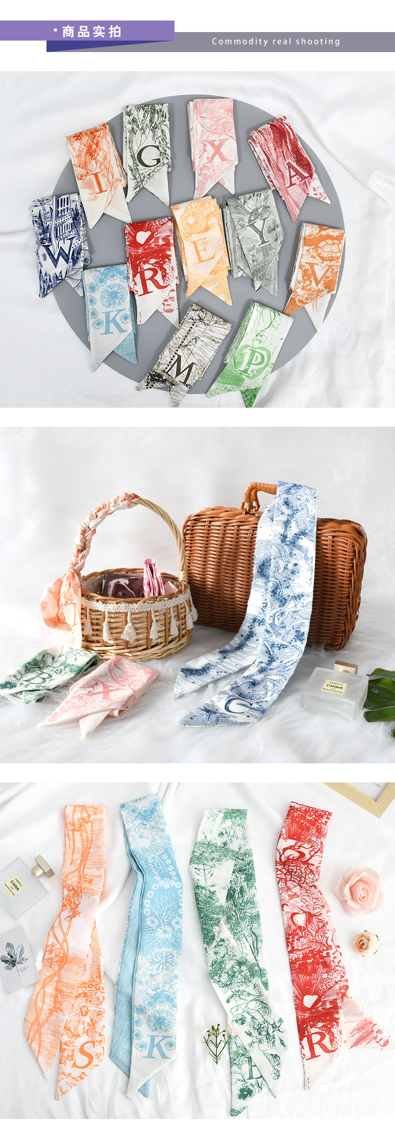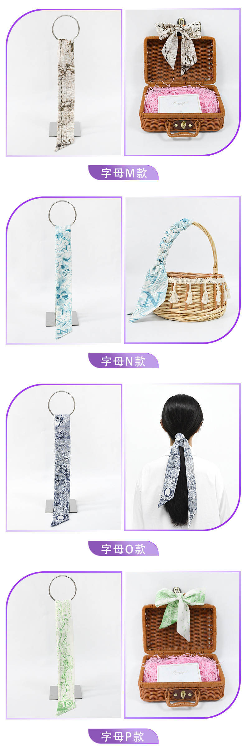 26 글자 타로 작은 리본 스카프 넥타이 가방 휴일 선물 상자 모든 매치 헤어 밴드 장식 작은 스카프 도매