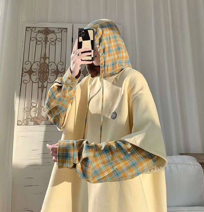가짜 투피스 스웨터 남자의 가을 후드 옷 봄과 가을 느슨한 플러스 사이즈 유행 브랜드 에 하이 스트리트 푹신한 잘 생긴 튀김 스트리트 재킷스토어 가기
