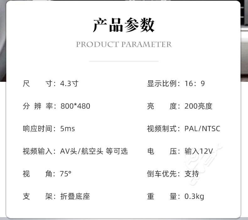 4.3 인치 자동차 접이식 디스플레이 사각 지대 비주얼 유니버설 트럭 AI 보행자 식별 반전 이미지 디스플레이스토어 가기