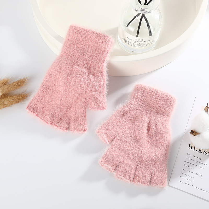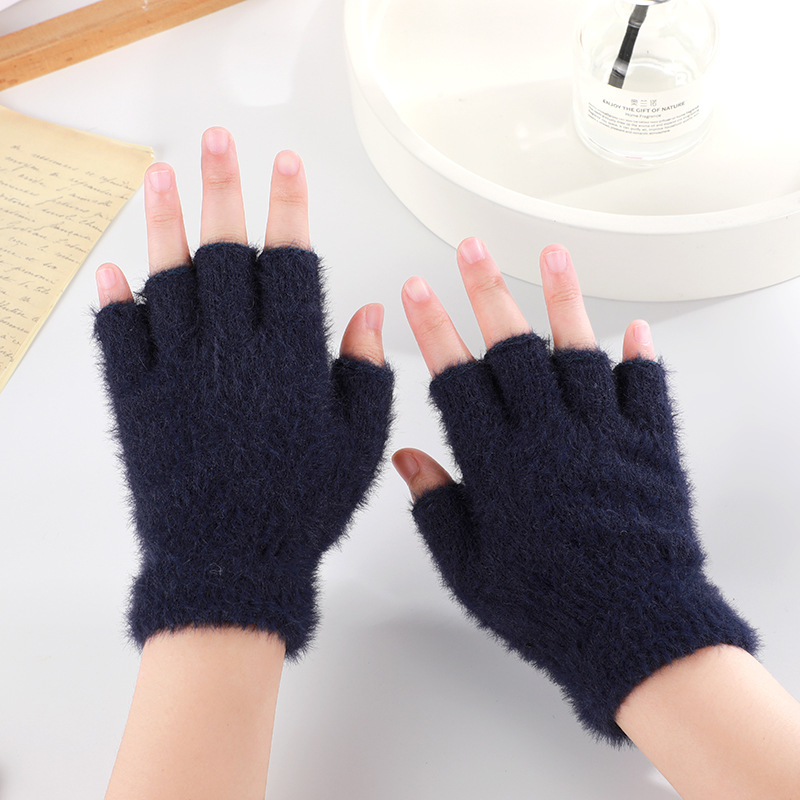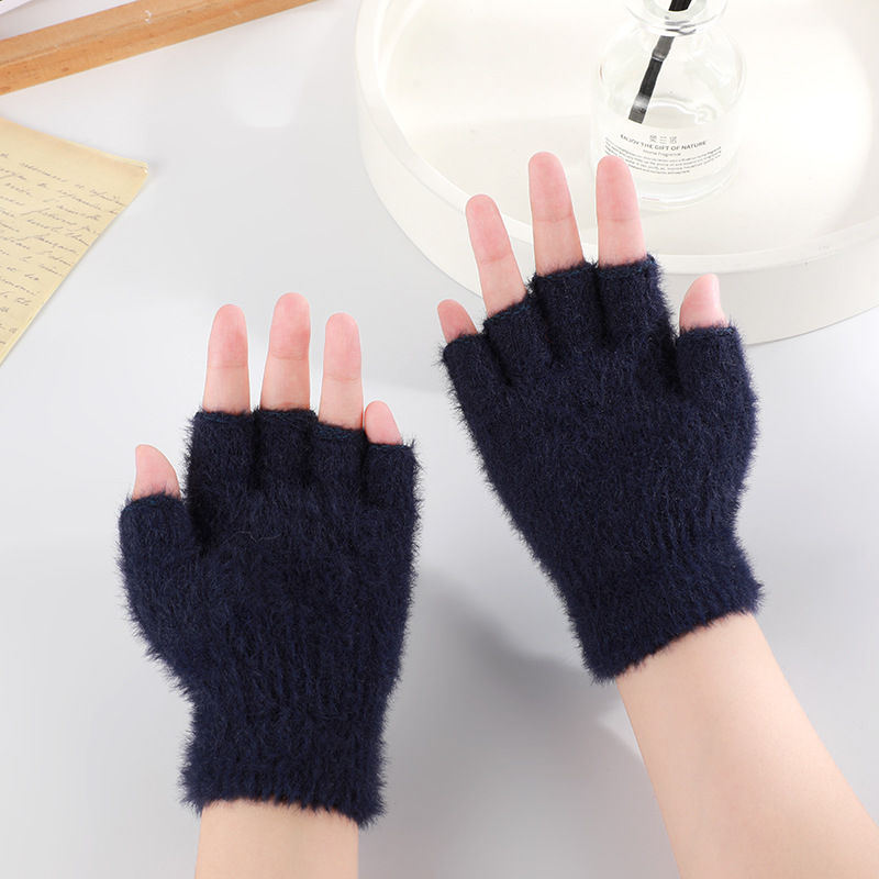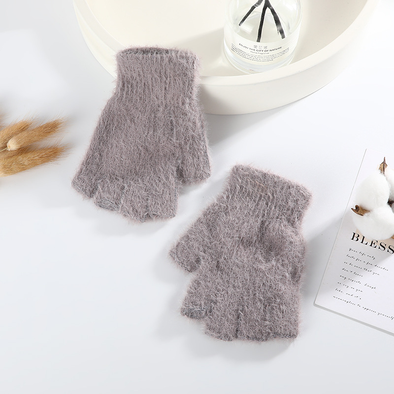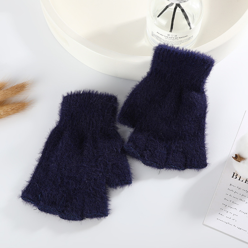 단색 아동용 반장갑, 가을 겨울용 두꺼운 남녀공용 니트 학생용 사이클링 반장갑, 도매 아동용 모델, 플리스 안감스토어 가기