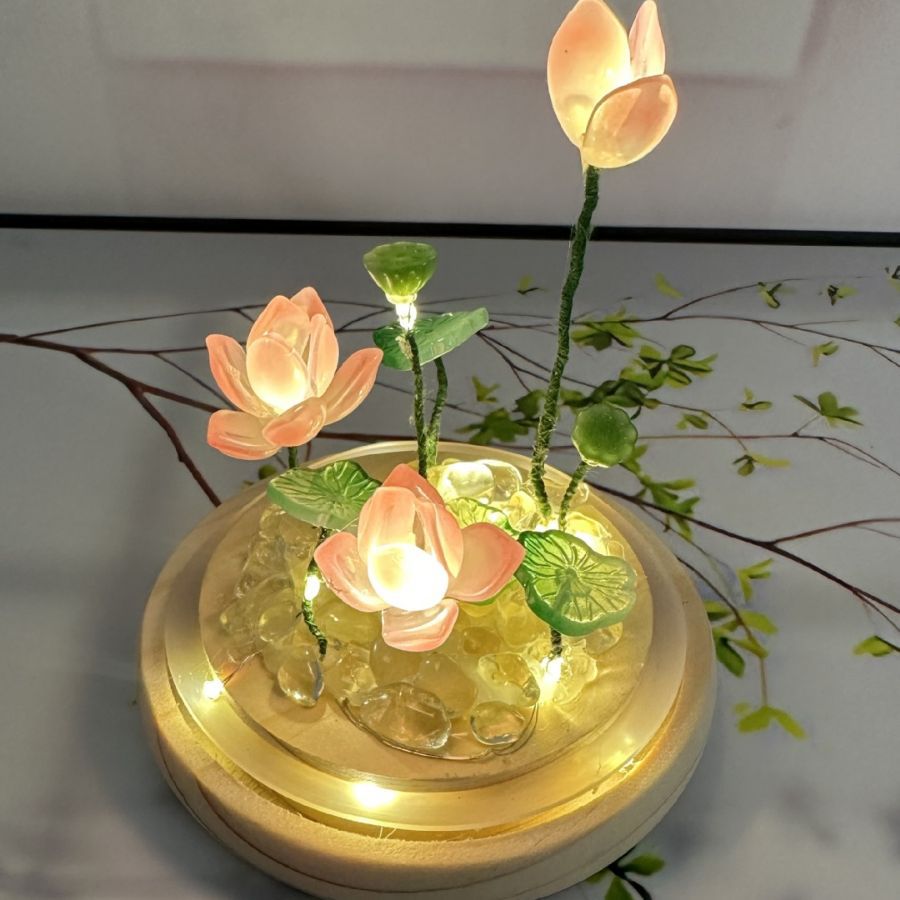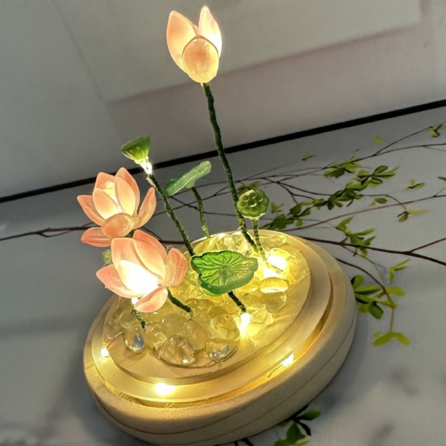 유리 연꽃 무드등 DIY 연꽃 재료 테이블 램프 장식품 여자친구 스승의 날 수제 분위기 조명
