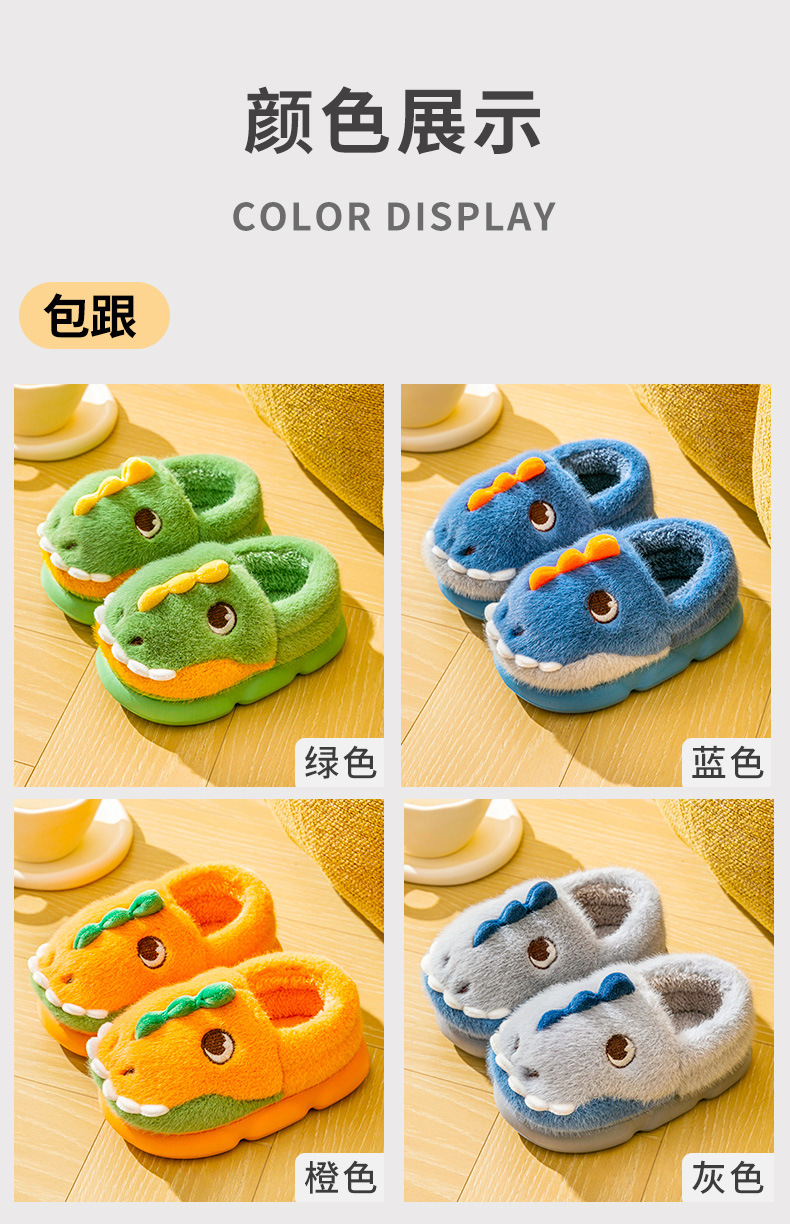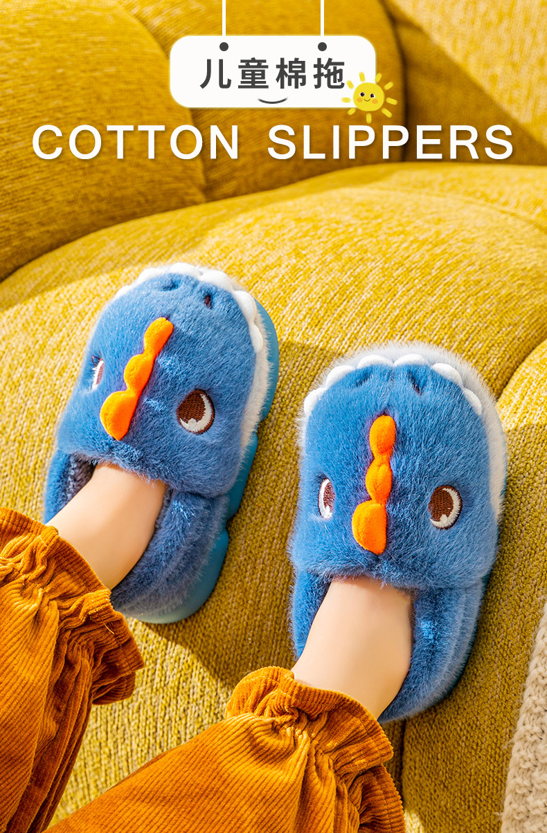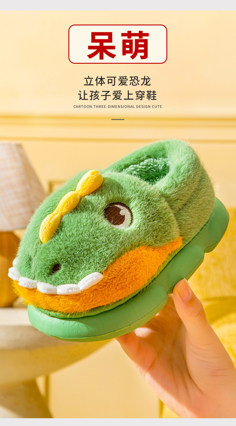 [가을과 겨울 신작] 소년 양모 슬리퍼 따뜻한 소년 면화 슬리퍼 겨울 어린이 만화 귀여운 공룡 가방스토어 가기