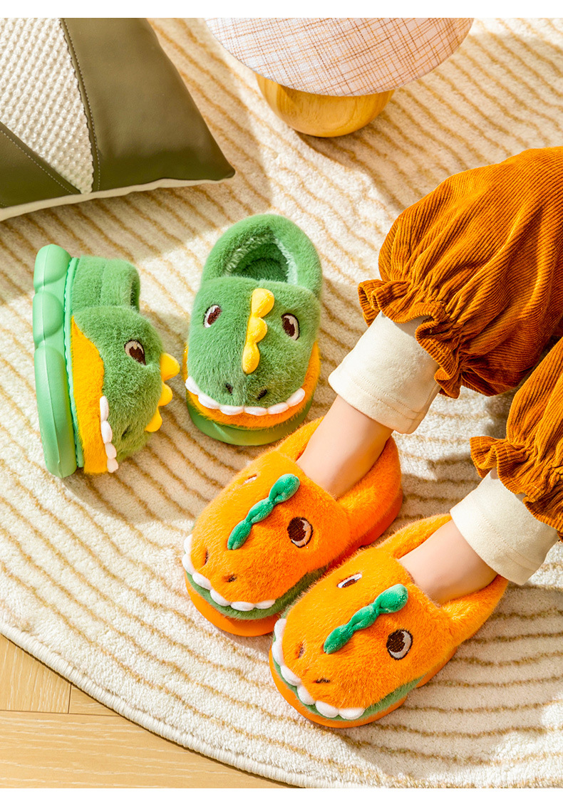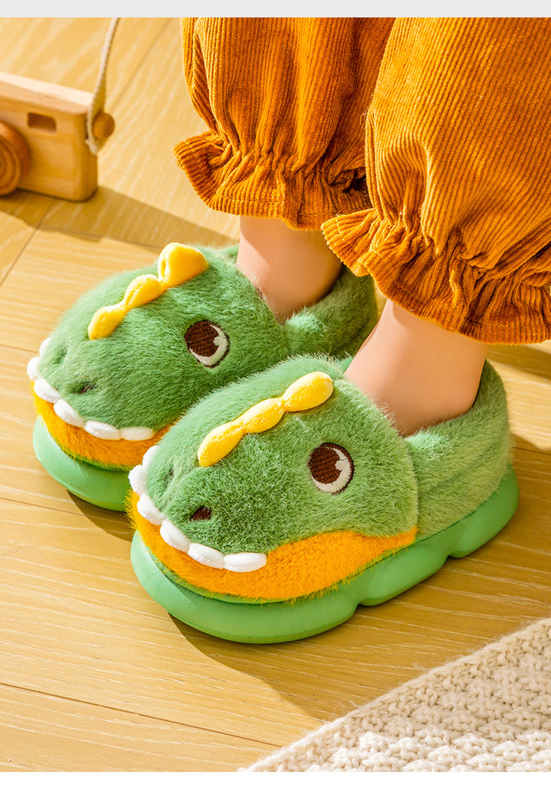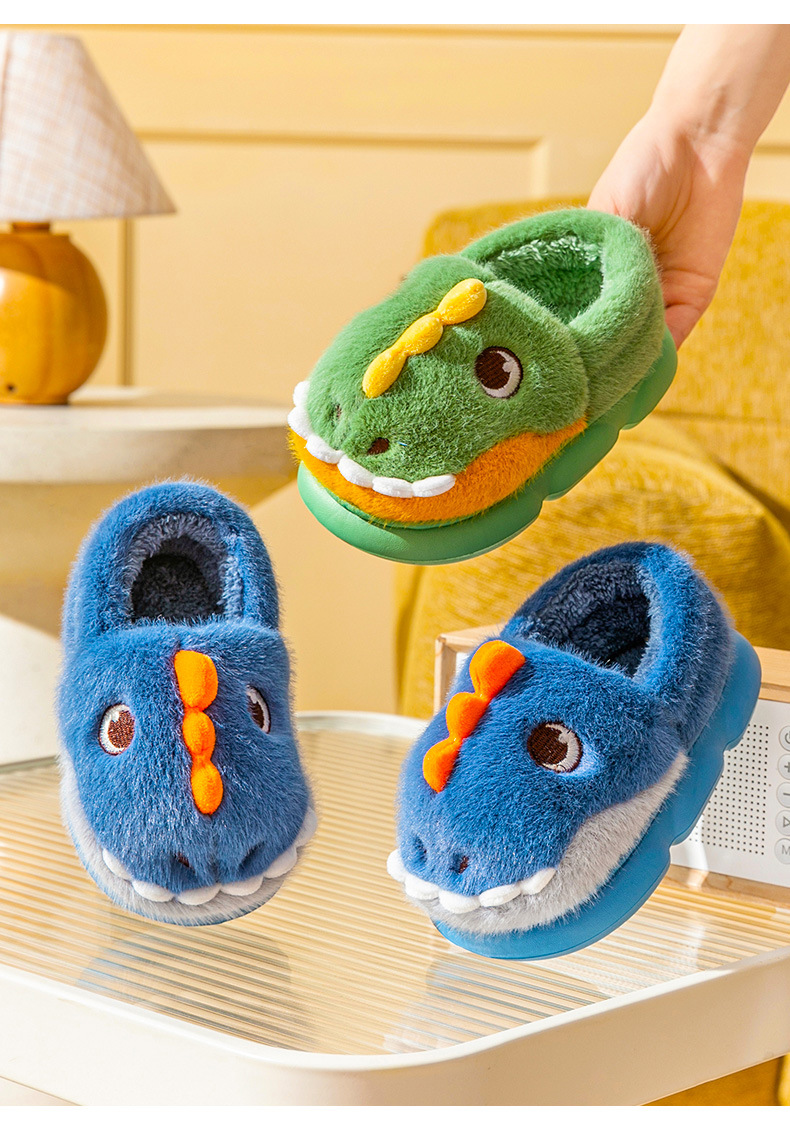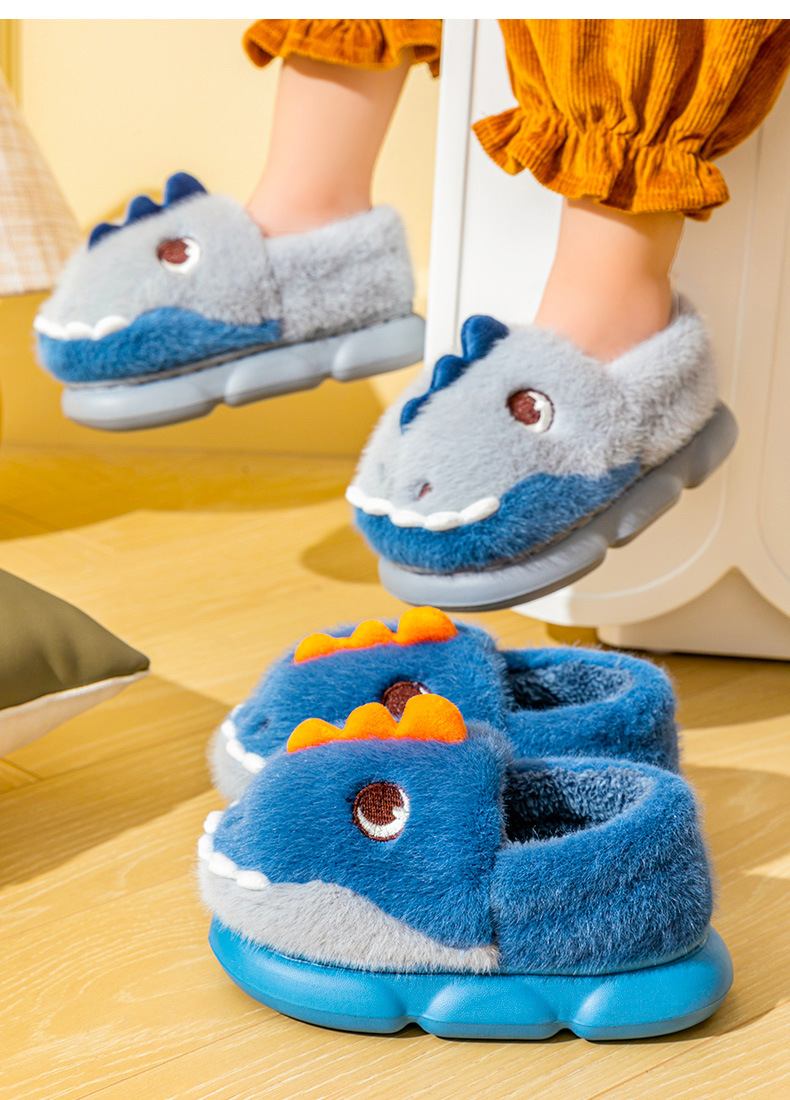 [가을과 겨울 신작] 소년 양모 슬리퍼 따뜻한 소년 면화 슬리퍼 겨울 어린이 만화 귀여운 공룡 가방스토어 가기