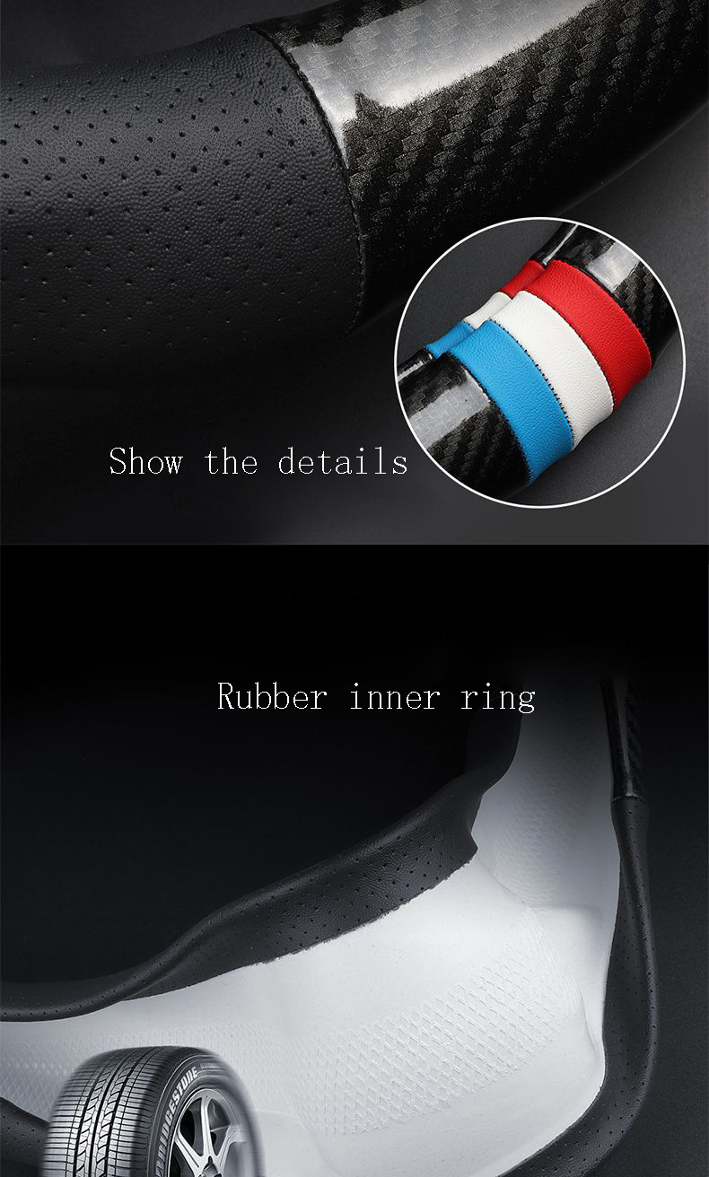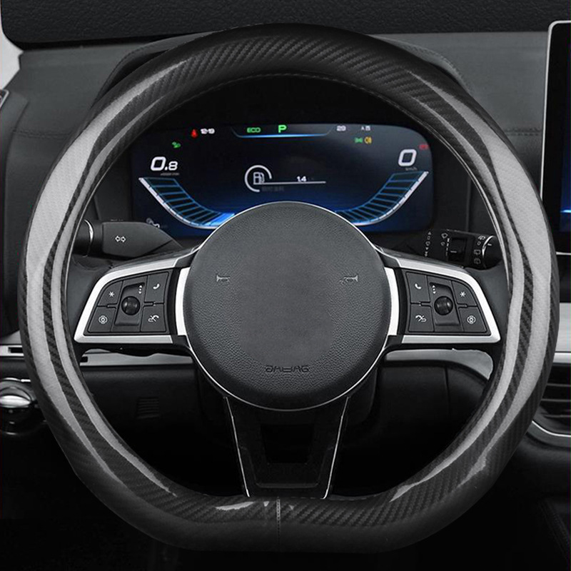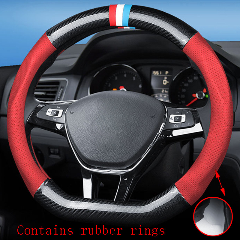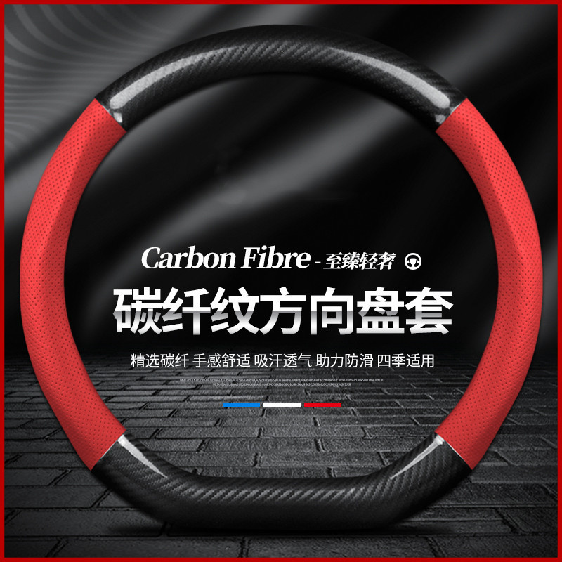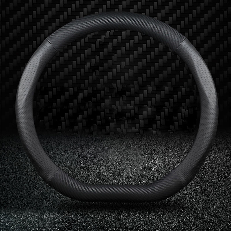 국경 간 자동차 탄소 섬유 스티어링 휠 커버 사계절 보편적 인 미끄럼 방지 초박형 땀 흡수성 편안한 핸들 커버 수정 부품