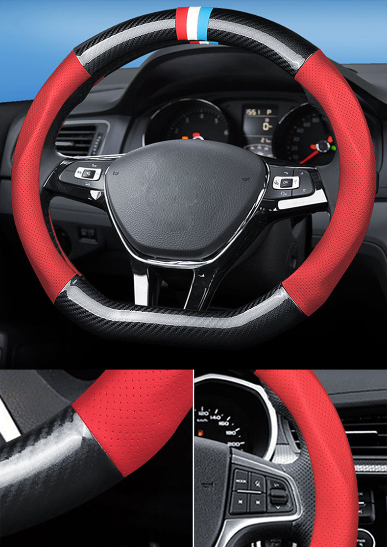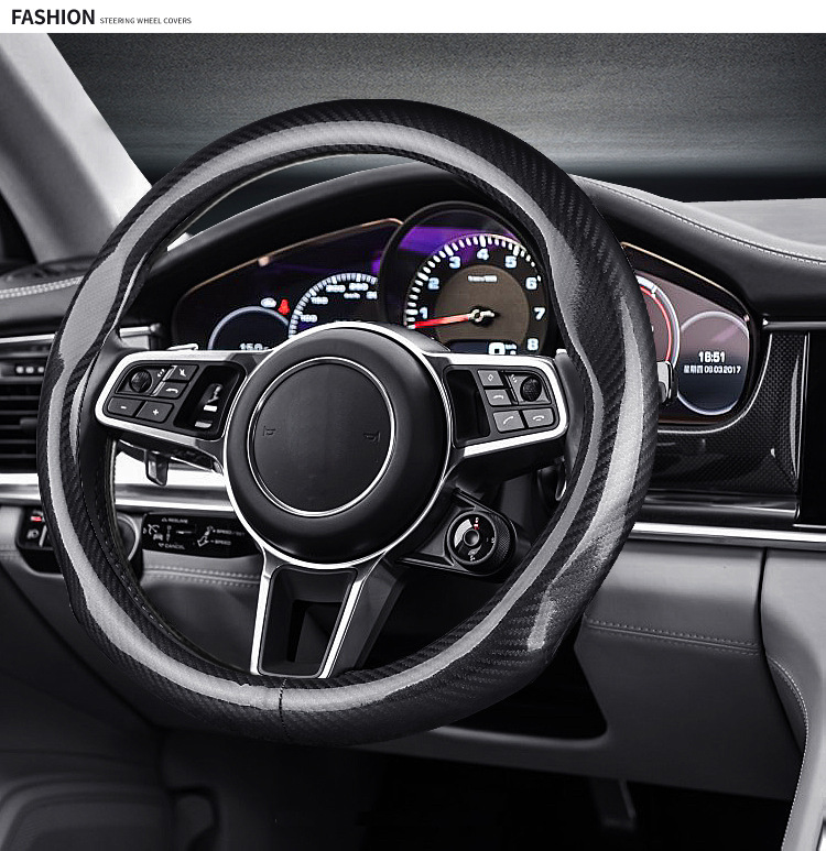 국경 간 자동차 탄소 섬유 스티어링 휠 커버 사계절 보편적 인 미끄럼 방지 초박형 땀 흡수성 편안한 핸들 커버 수정 부품스토어 가기