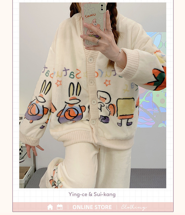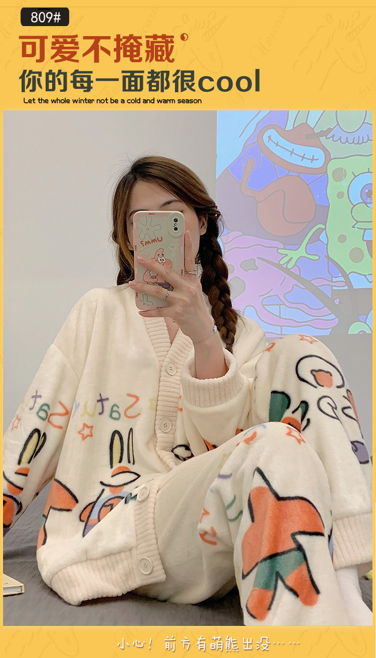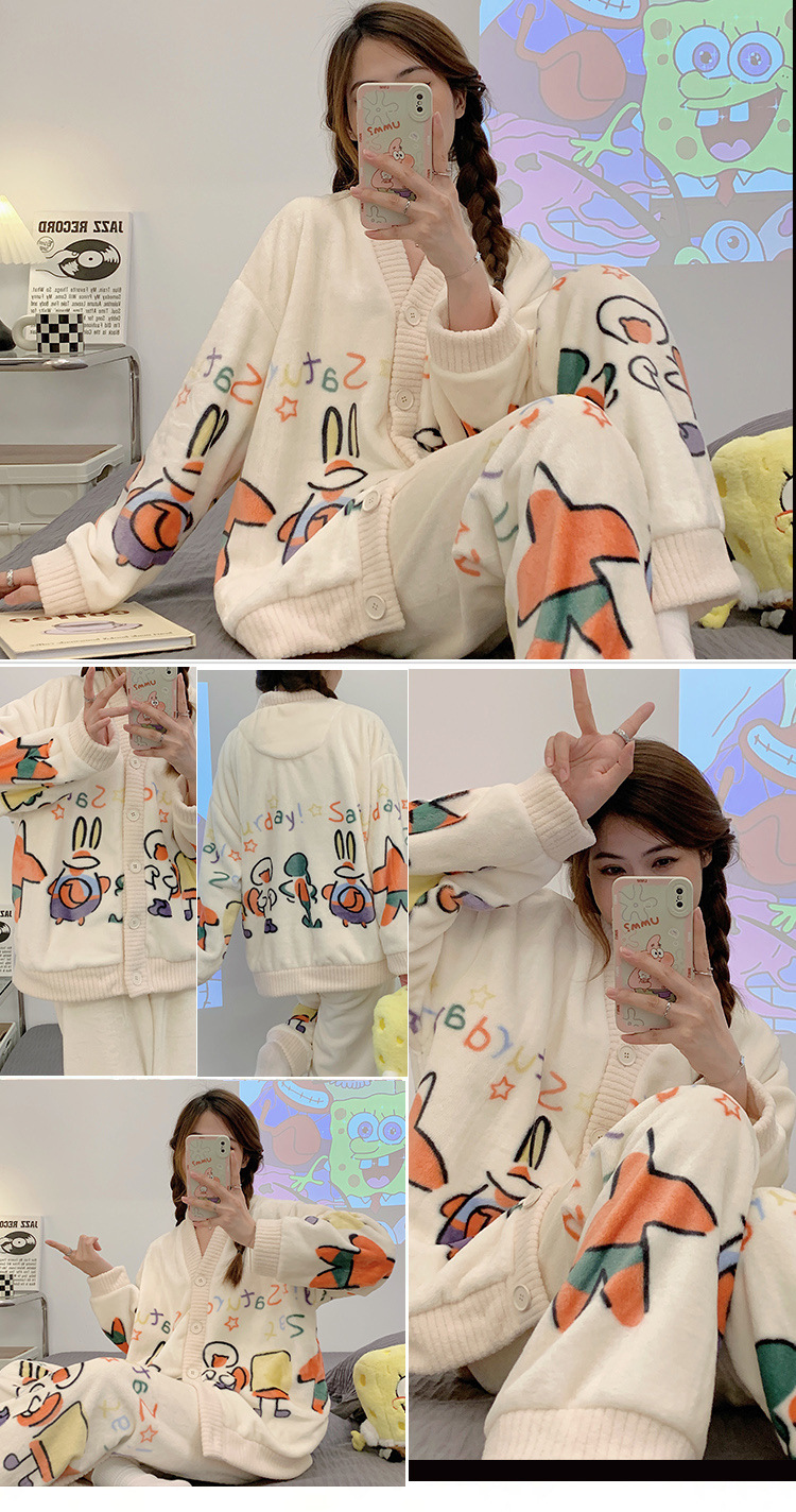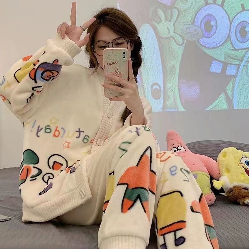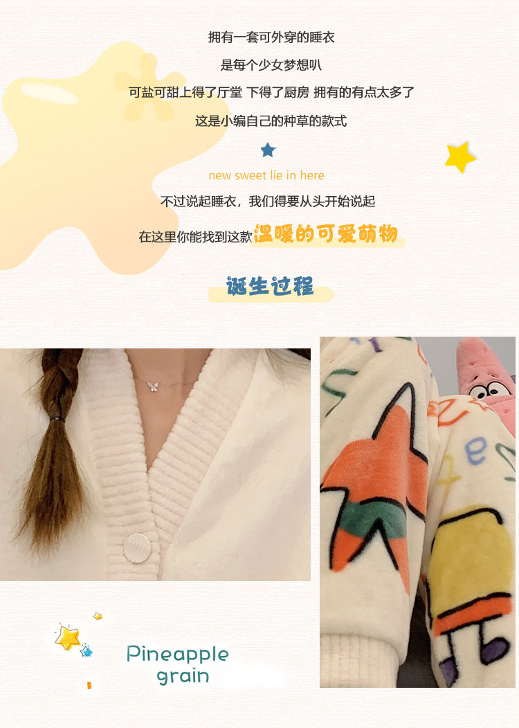 패트릭 잠옷 여자의 겨울 산호 양털 두꺼운 기모 만화 귀여운 가을과 겨울 카디건 달콤한 스타일 가정 옷스토어 가기